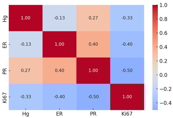 Correlation matrix between mercury and traditional prognostic factors ER, PR, and Ki67.