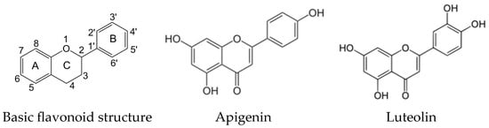 Basic flavonoid structure and chemical structures of apigenin and luteolin.
