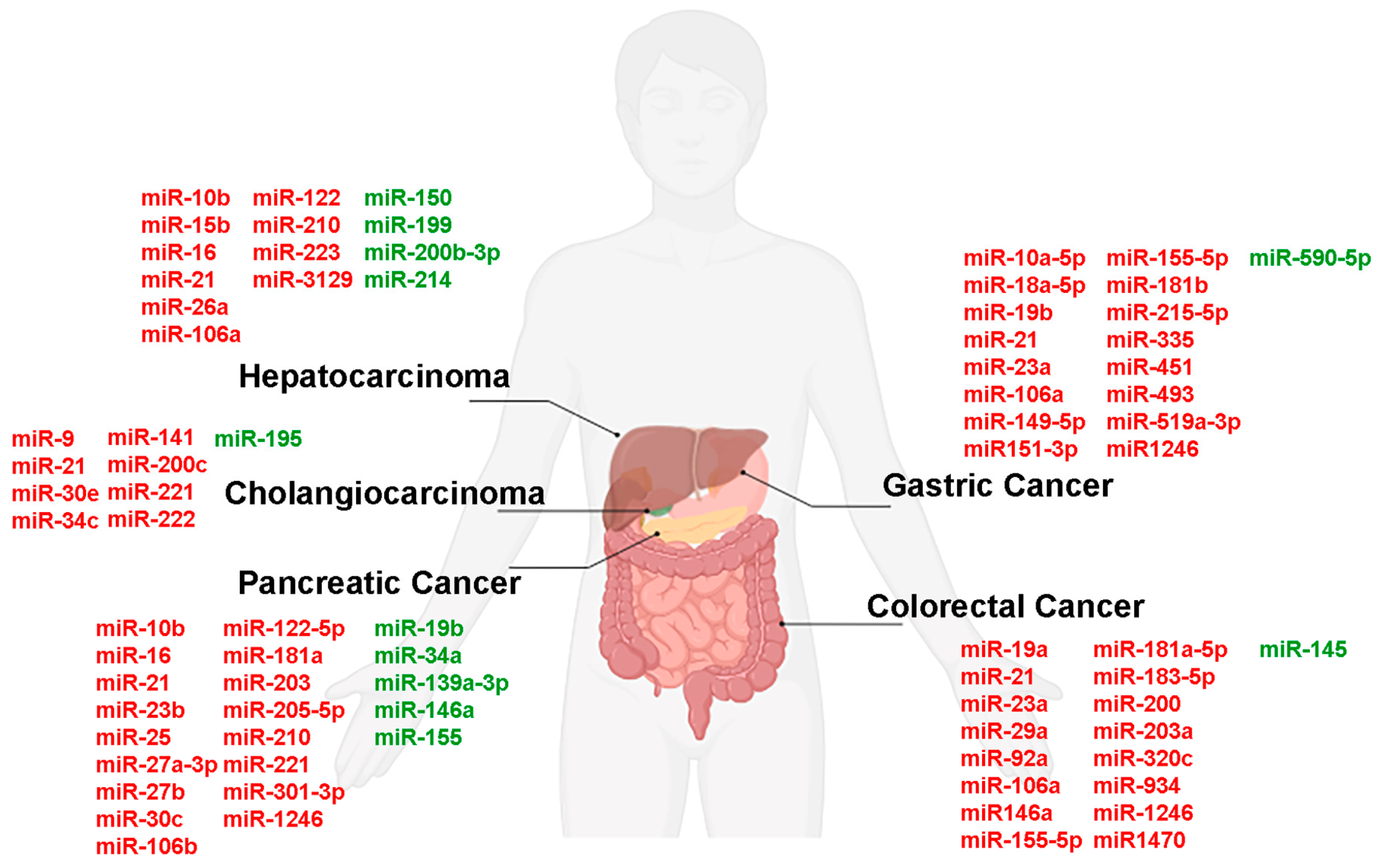 Nardozi, D., Lucarini, V., Angiolini, V., Feverati, N., Benvenuto, M., Focaccetti, C., Del Conte, L., Buccitti, O., Palumbo, C., Cifaldi, L., Ferretti, E., Bei, R., & Masuelli, L. (2026). Extracellular Vesicle-Derived microRNAs: Novel Non-Invasive Biomarkers for Gastrointestinal Malignancies. International Journal of Molecular Sciences, 27(1), 10. https://doi.org/10.3390/ijms27010010