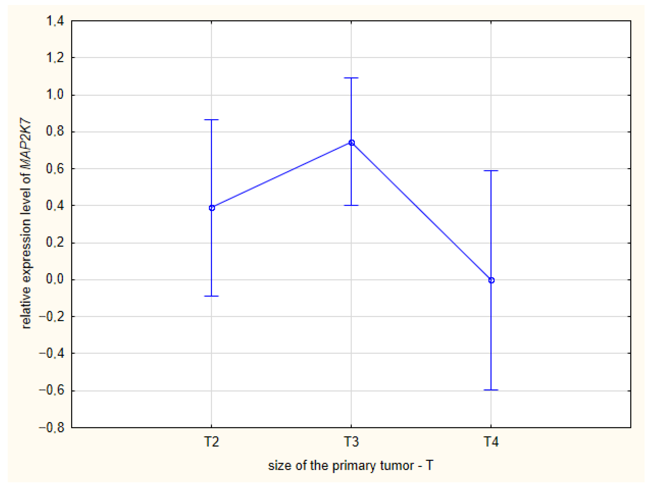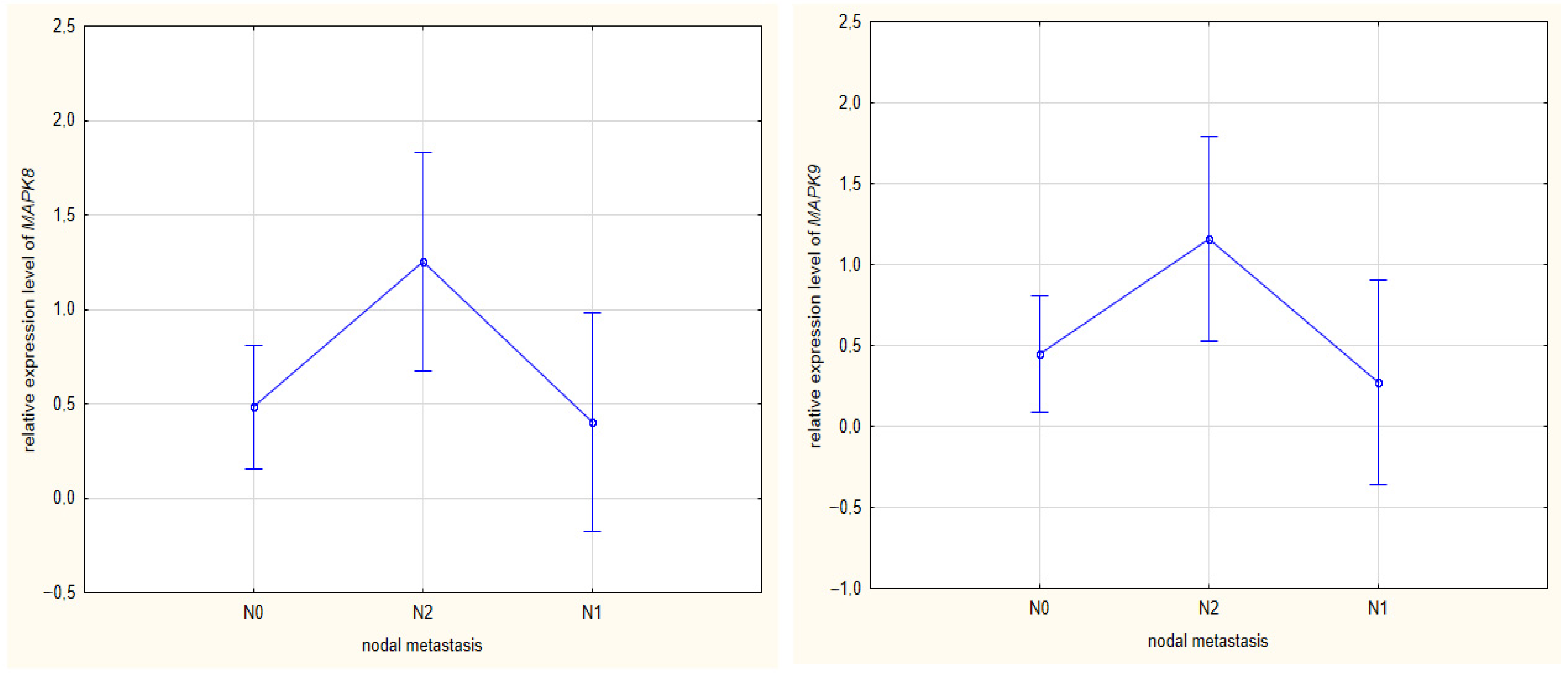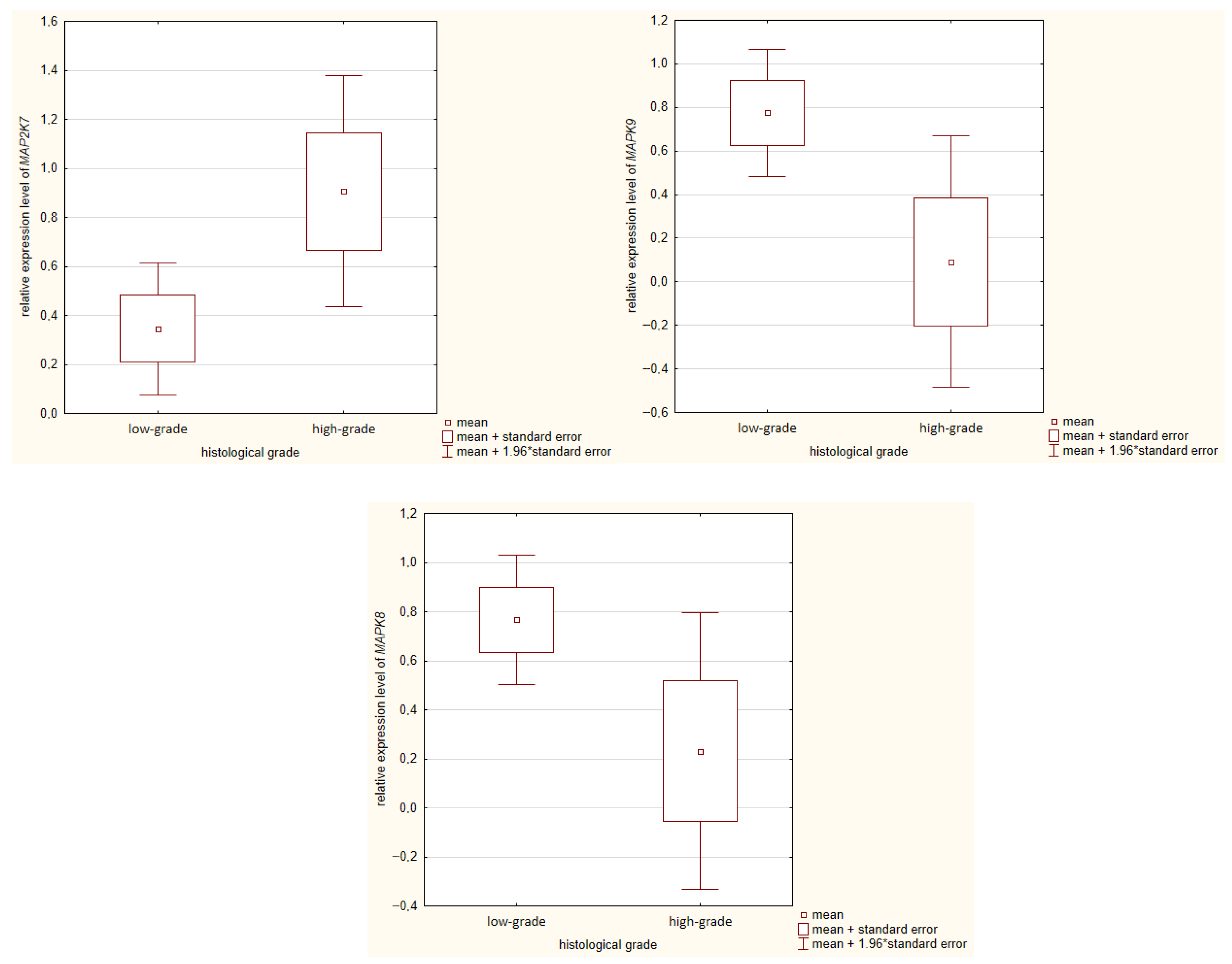 | Gene Expression Level: | MAP2K4 | MAP2K7 | MAPK8 | MAPK9 |