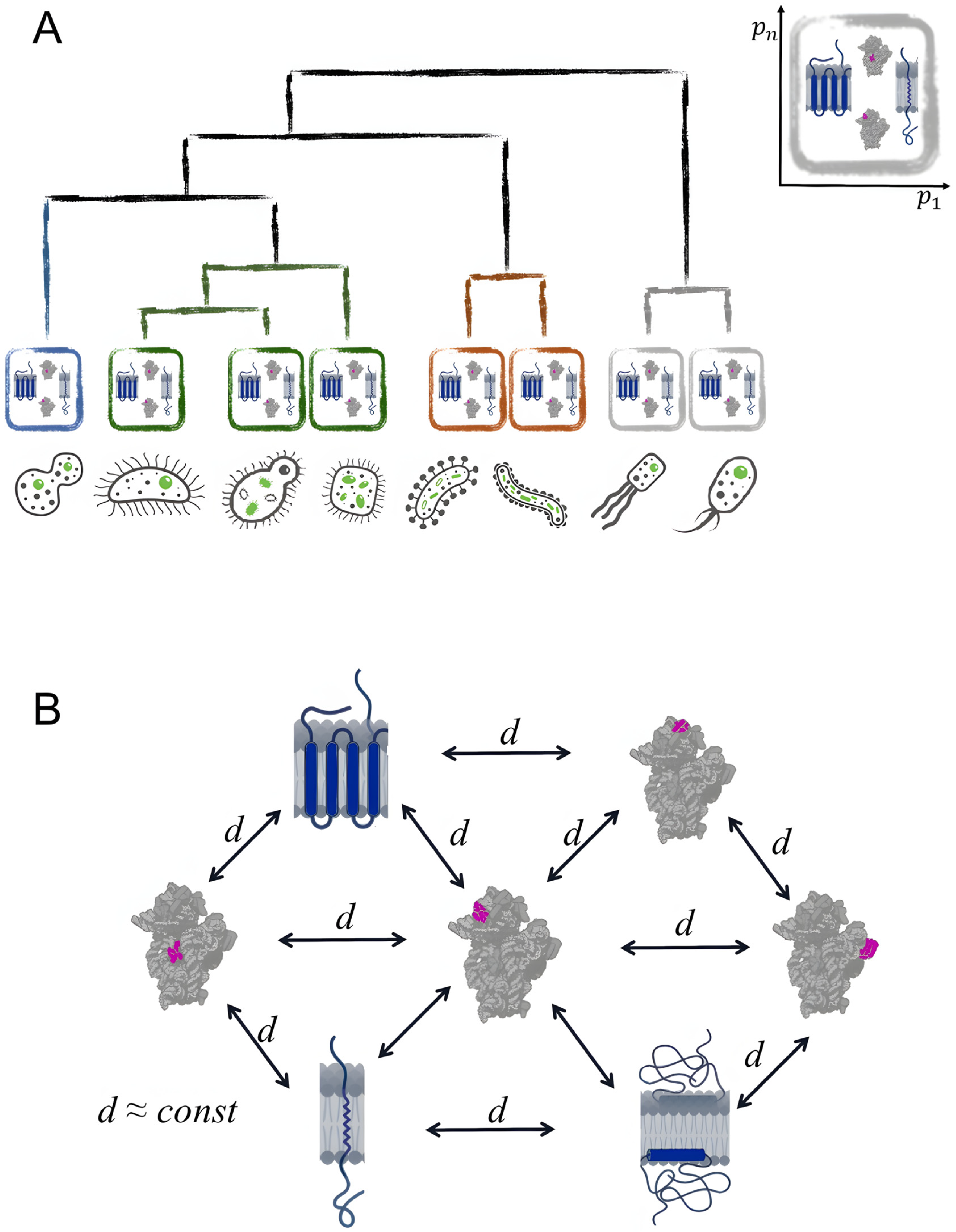 - Protein groups: whole proteome, membrane, non-membrane, nucleotide-binding, non-nucleotide-binding, ribosomal;