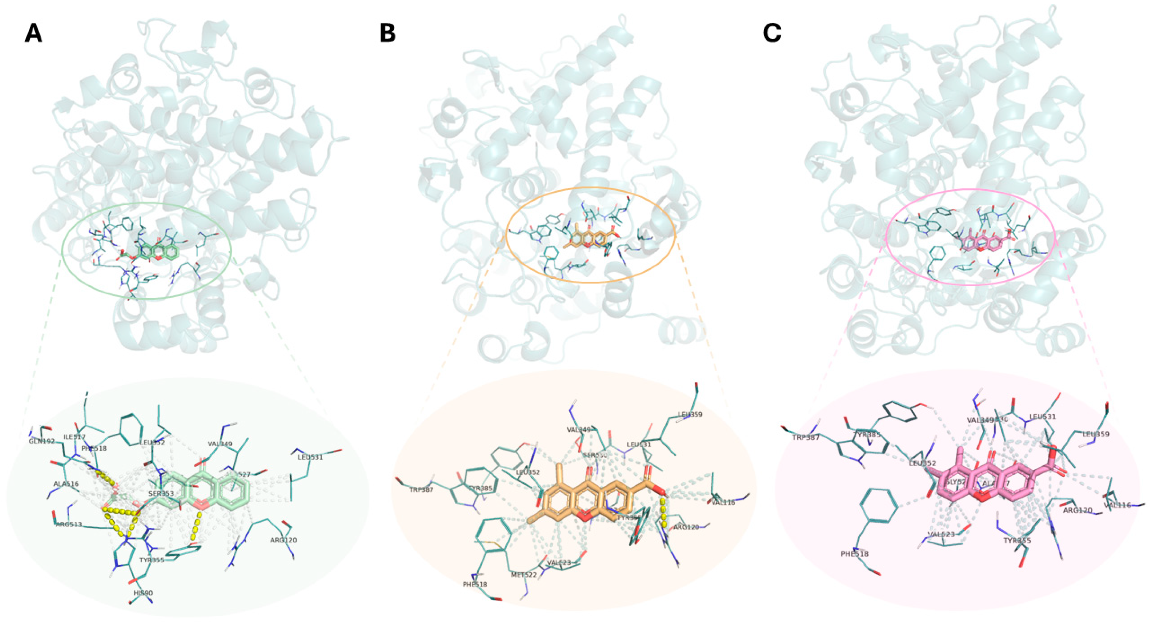 | O (ester) | O (ester) | Tyr 355 (3.24) | Arg 120 (2.97) | |||||