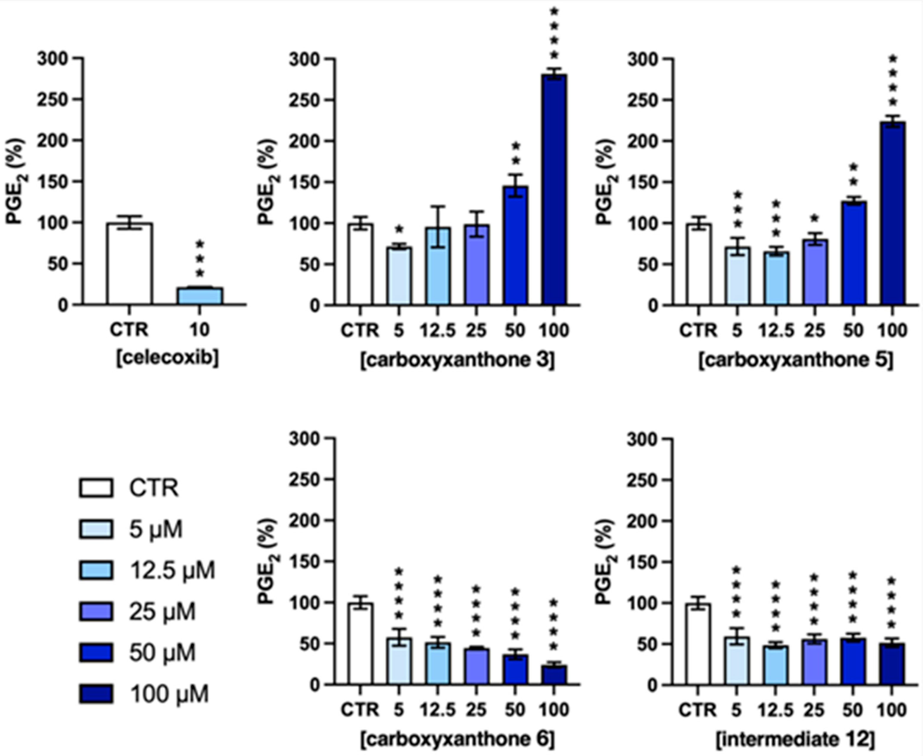 | Celecoxib | Carboxyxanthone 3 | Carboxyxanthone 5 | Carboxyxanthone 6 | Intermediate 12 |
