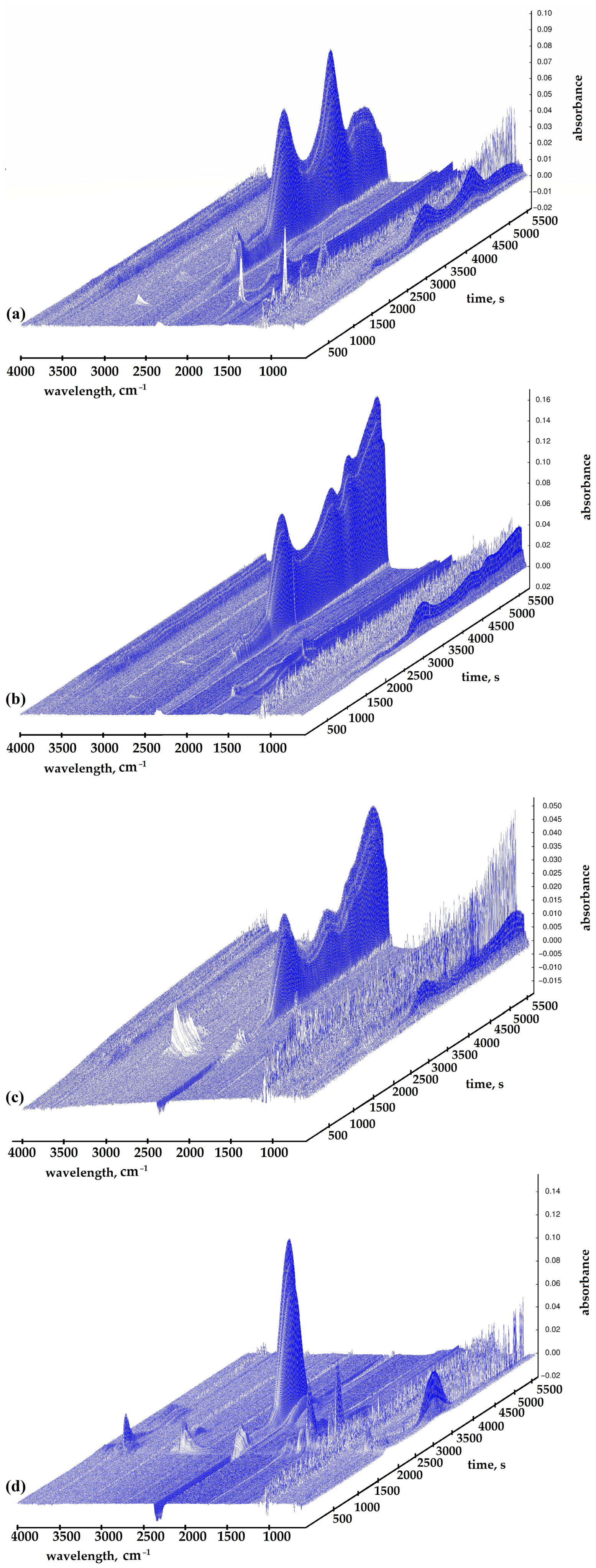 - Kök, M.V.; Varfolomeev, M.A.; Nurgaliev, D.K. Crude Oil Characterization Using TGA-DTA, TGA-FTIR and TGA-MS Techniques. J. Pet. Sci. Eng. 2017, 154, 537–542. [Google Scholar] [CrossRef]