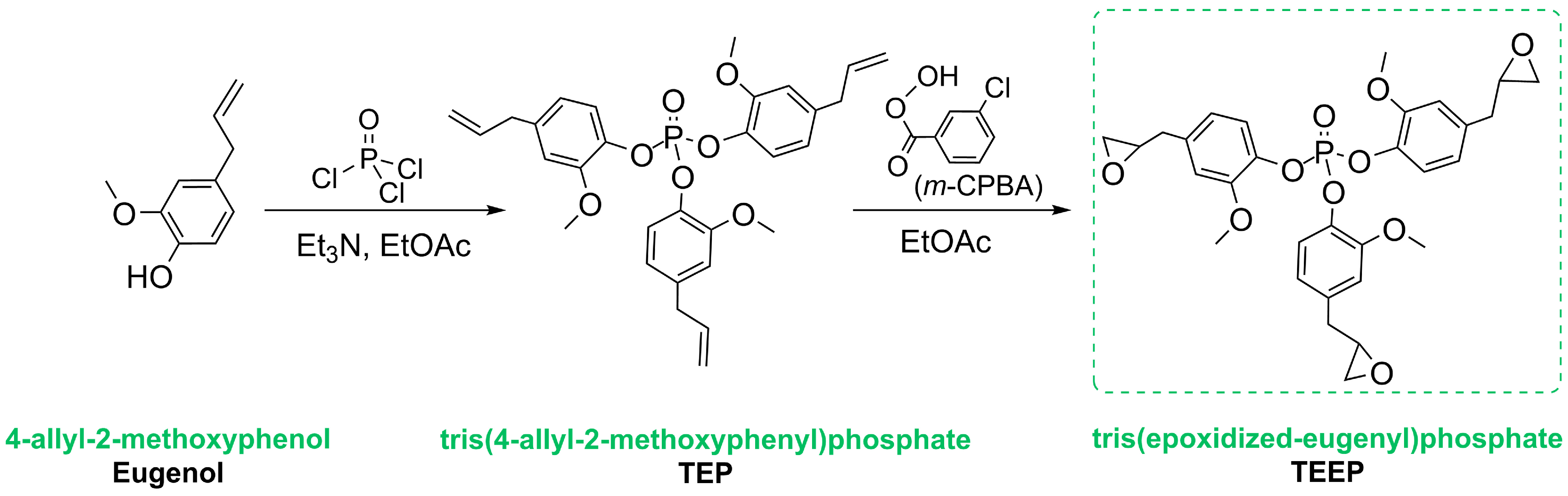 3.2. Synthetic Route to Obtain Tris(2-Methoxy-4-(2,3-Epoxypropyl)Phenyl Phosphate) (TEEP)