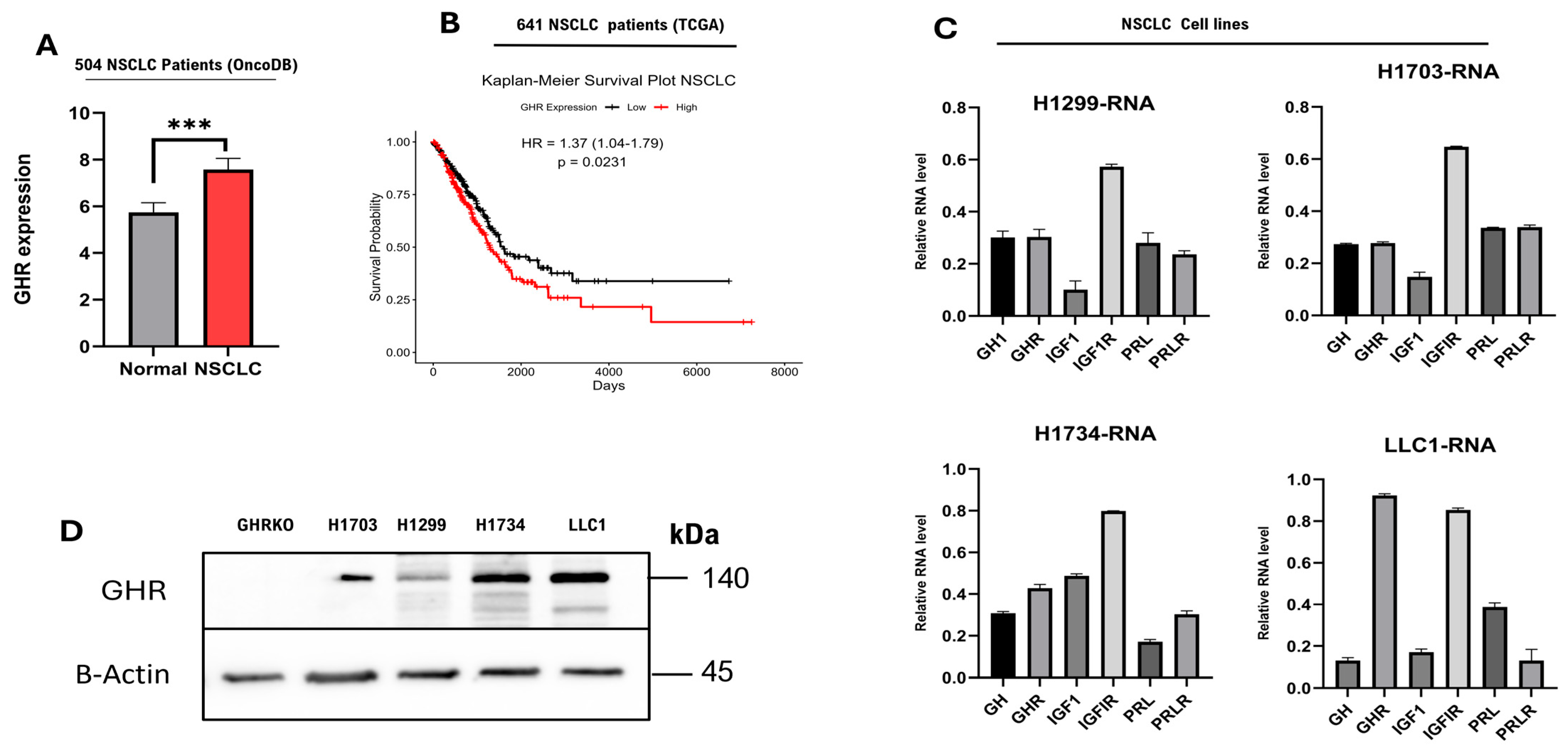 APA StyleAhmad, A., Basu, R., Fyffe, C., Geiger, R., Walsh, C., Minto, D., Brenya, E., Alur, A. V., Neggers, S. J. C. M. M., & Kopchick, J. J. (2026). Targeting Growth Hormone Receptor to Overcome Therapy Resistance in Non-Small Cell Lung Cancer. International Journal of Molecular Sciences, 27(1), 115. https://doi.org/10.3390/ijms27010115