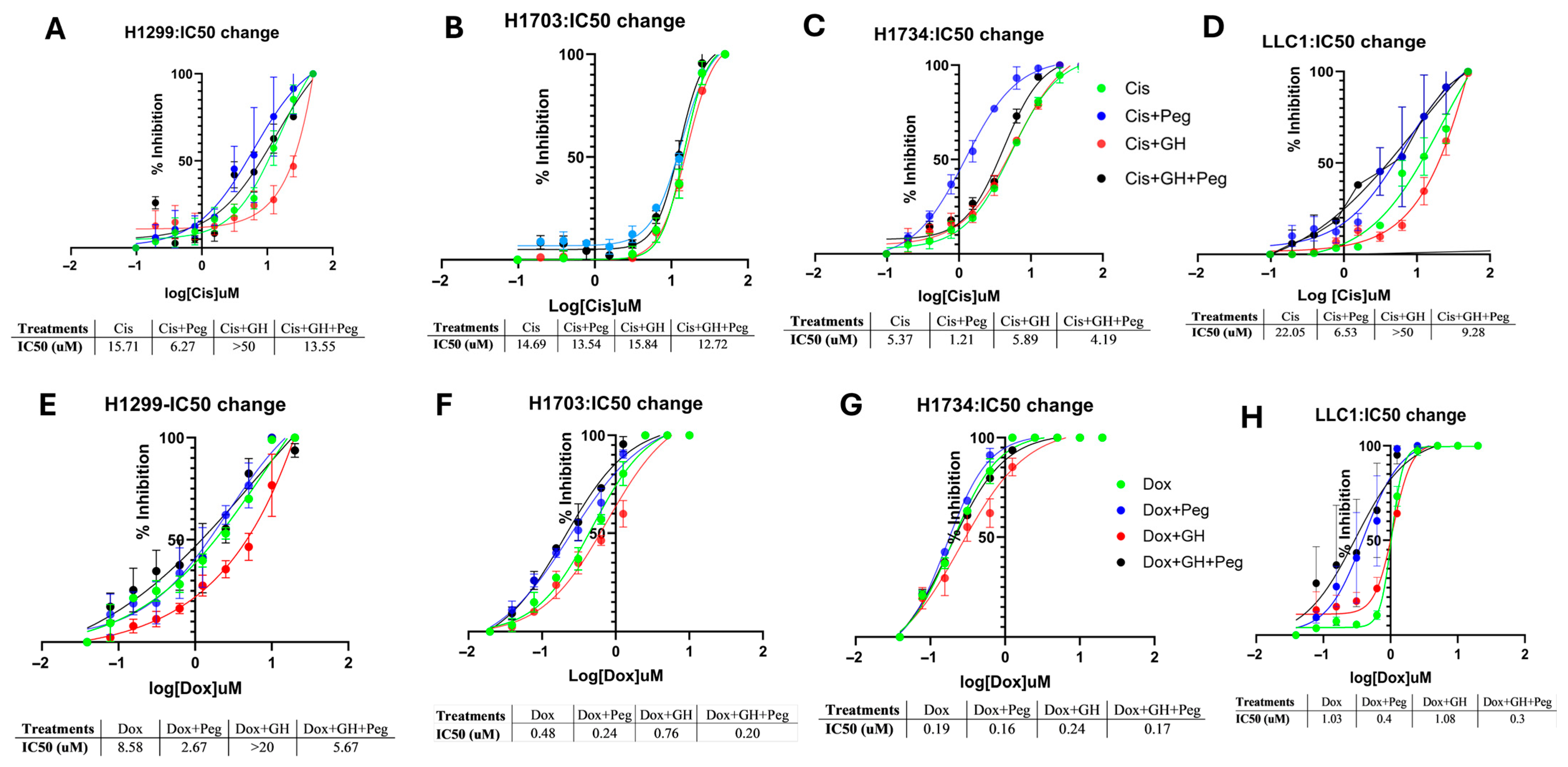 2.3. Pegvisomant Sensitizes NSCLC Cells to Chemotherapeutic Agents In Vitro