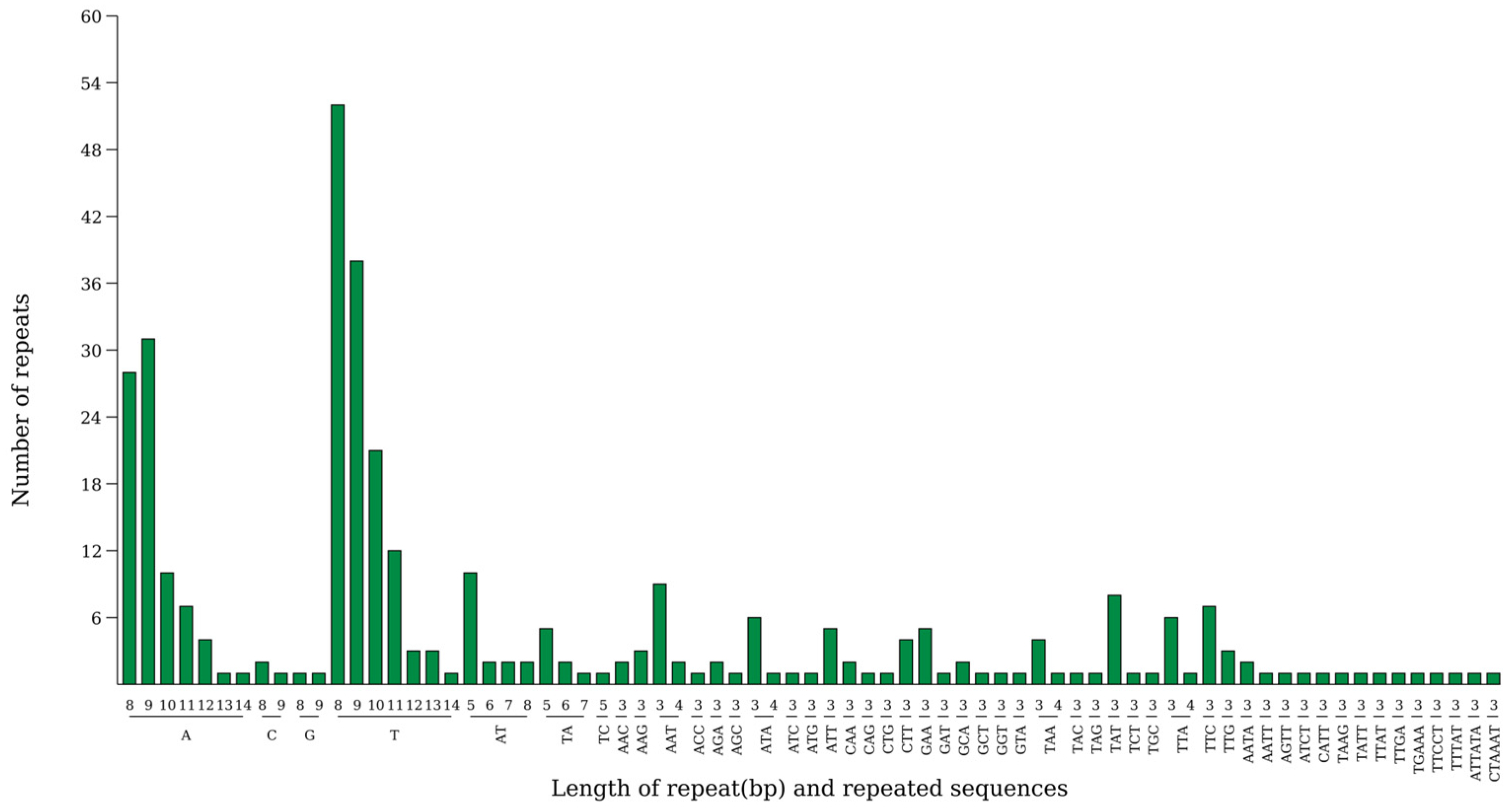 2.5. Simple Sequence Repeat (SSR) Analysis