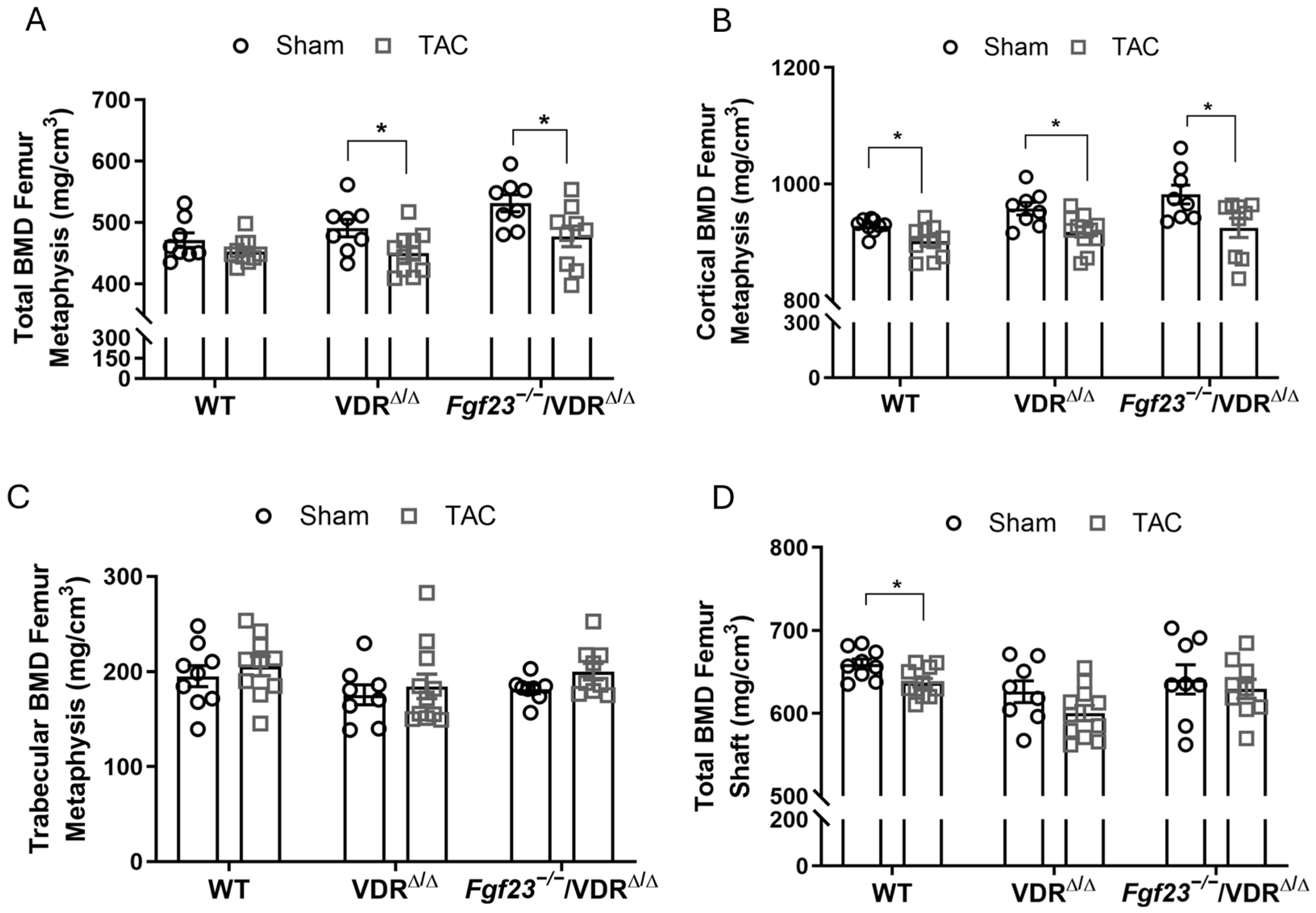 2.4. FGF23 Lacks Essential Role in TAC-Induced Osteopenia