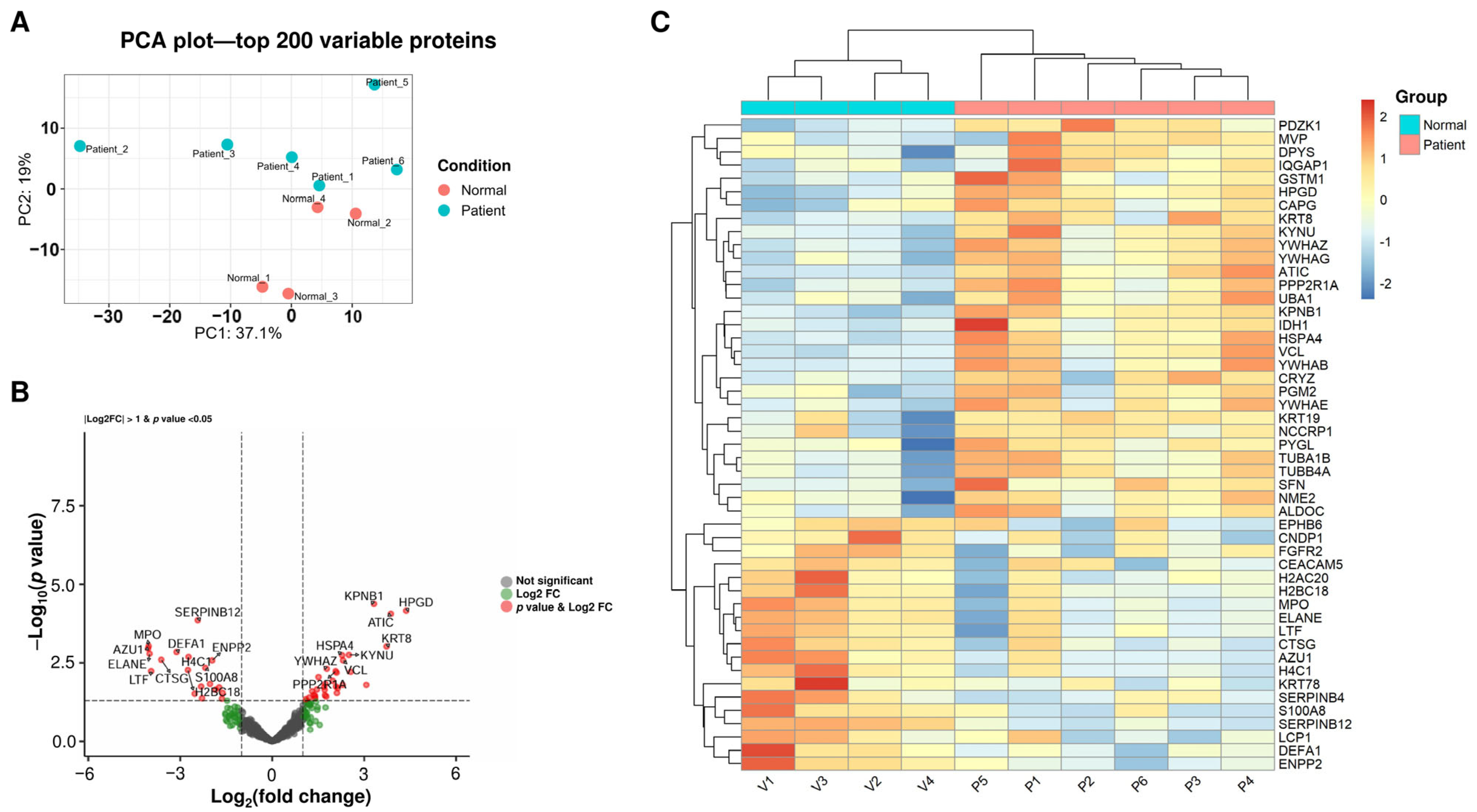 2.3. Proteomic Analysis of uEVs Reveals the Suppression of Neutrophil-Mediated Inflammation in Treated IC Patients