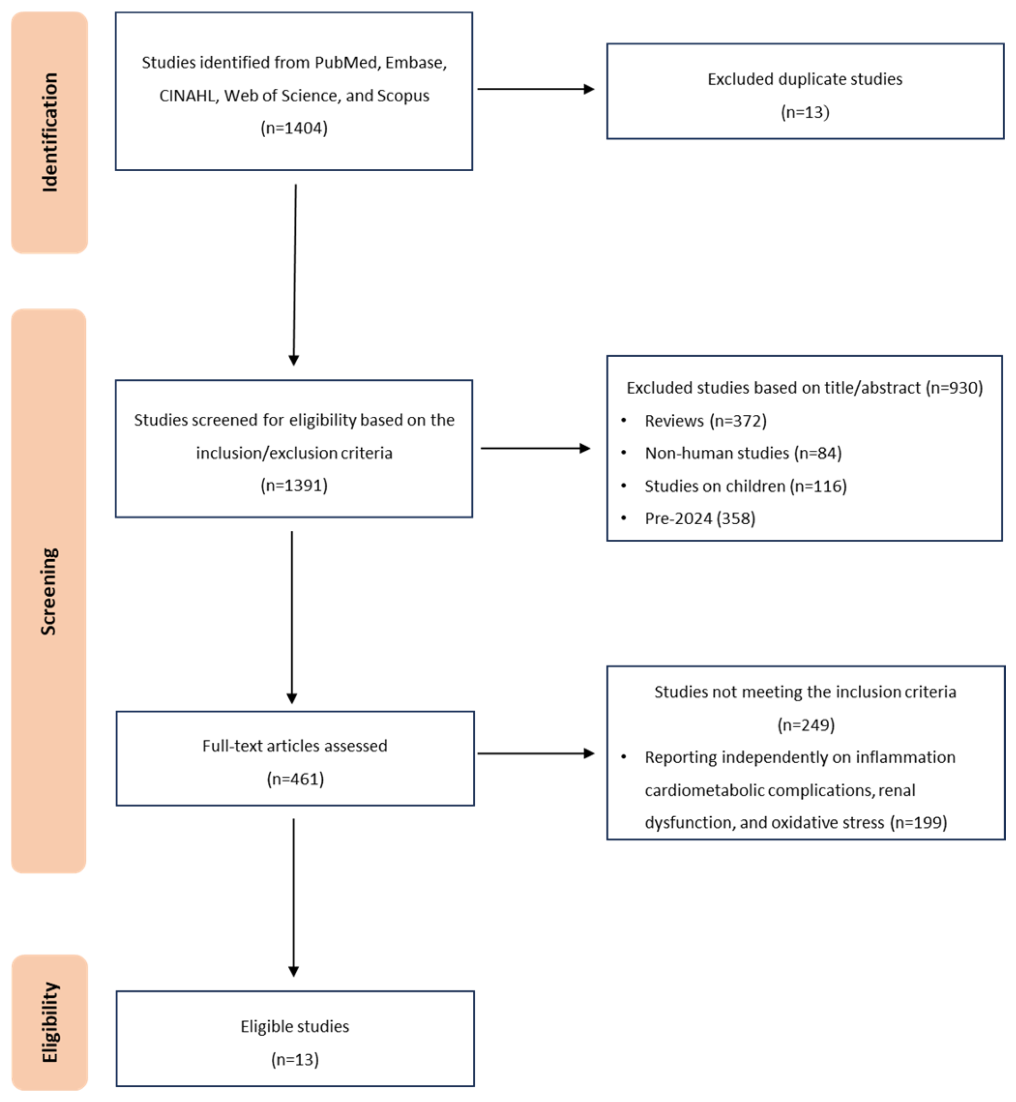 | Human adults (≥18 years) with CKMS | Pediatric populations (<18 years); animal or pre-clinical studies |