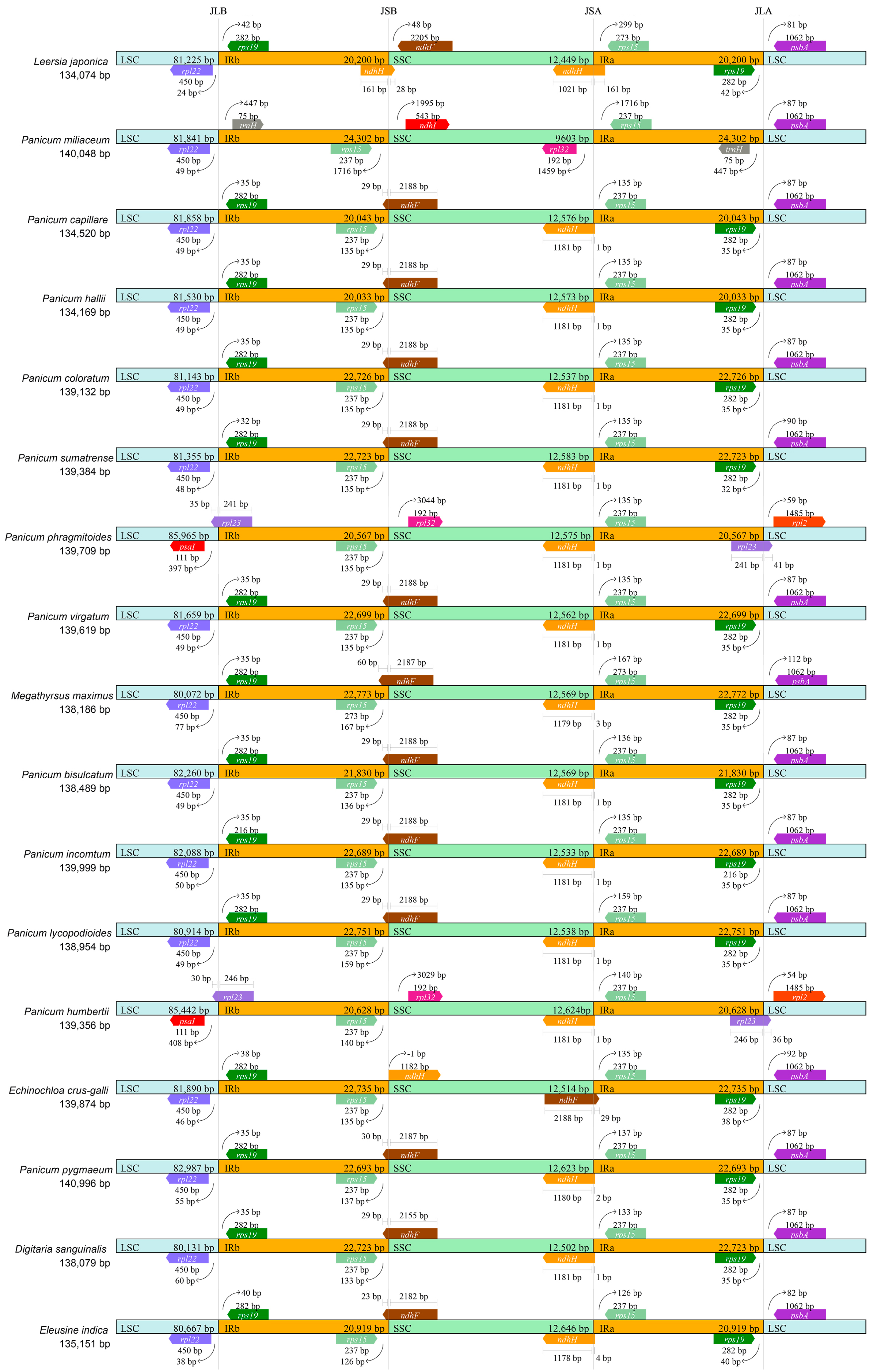 - Li, H.; Guo, Q.; Xu, L.; Gao, H.; Liu, L.; Zhou, X. CPJSdraw: Analysis and visualization of junction sites of chloroplast genomes. PeerJ 2023, 11, 15326. [Google Scholar] [CrossRef]