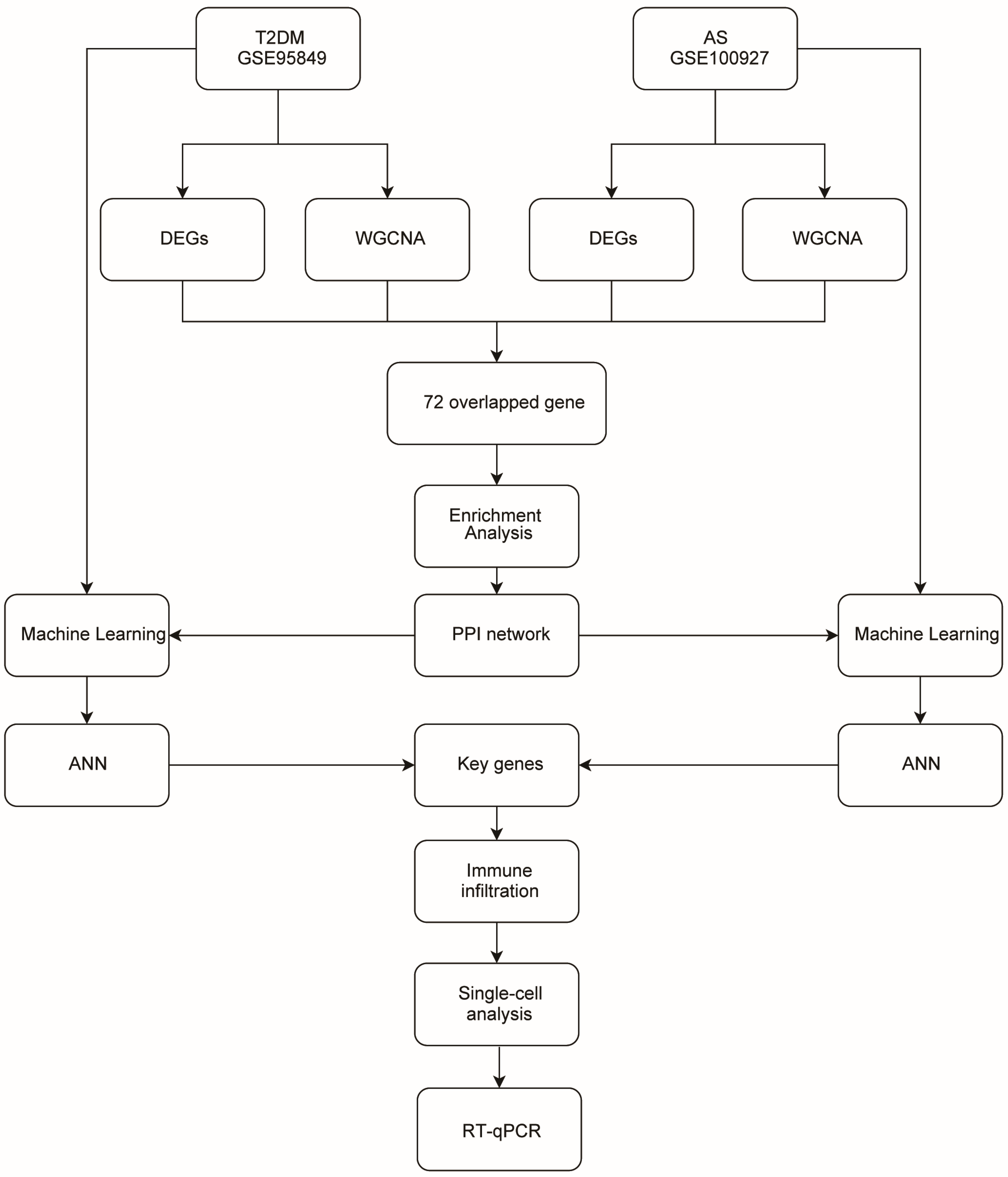 2.2. Identification of DEGs in T2DM and AS