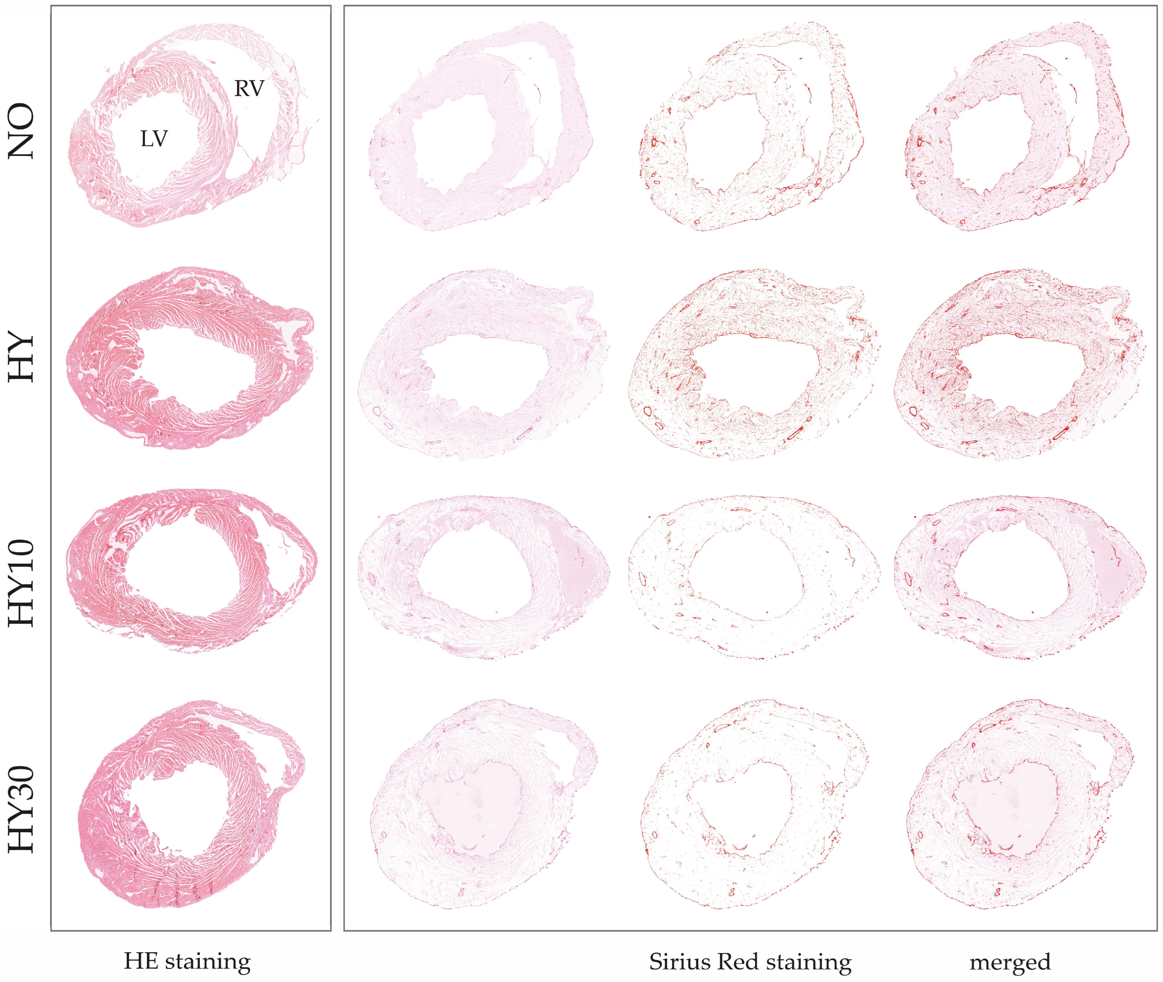 2.4. Morphometric and Histological Parameters of Cardiac Injury