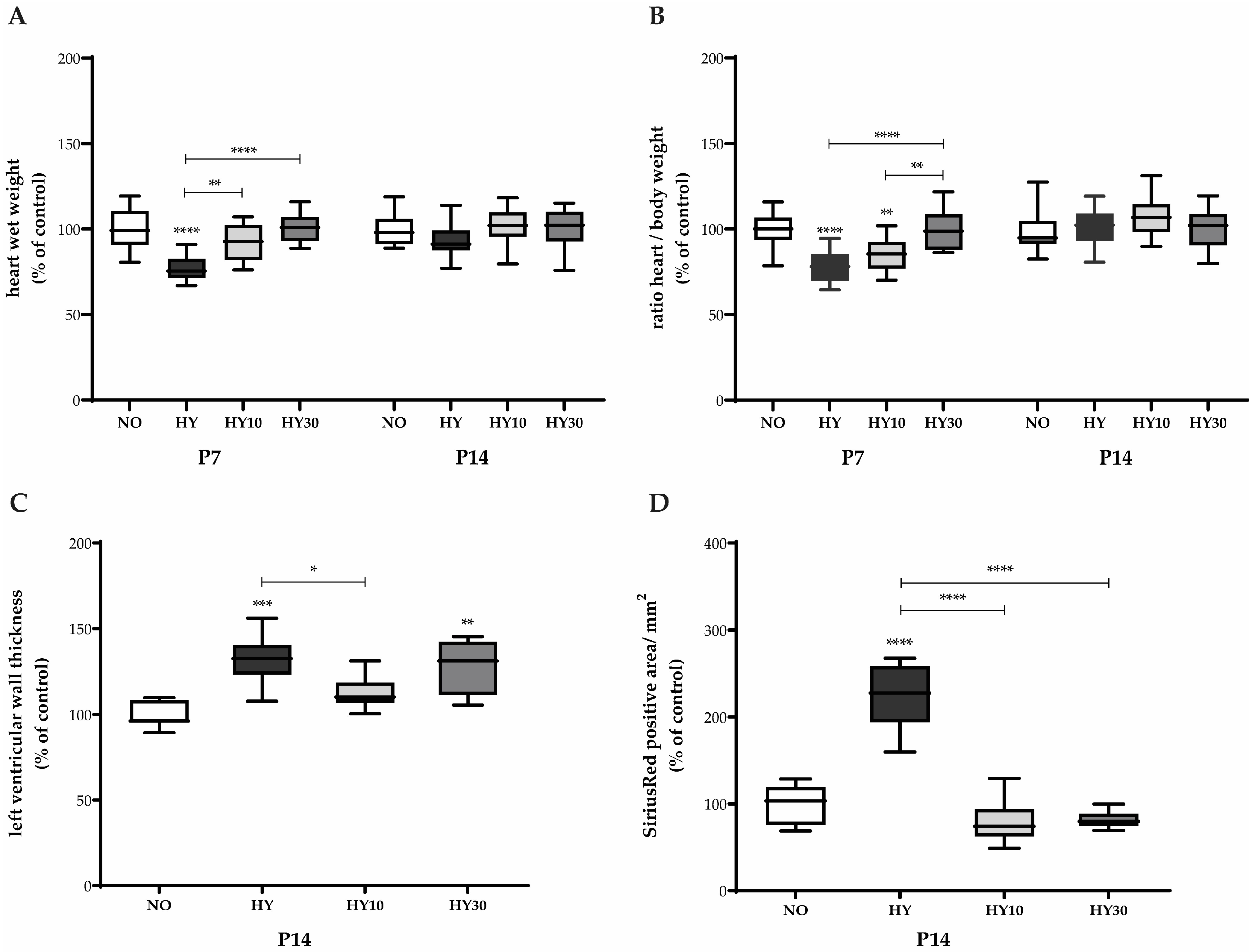 - Ravizzoni Dartora, D.; Flahault, A.; Pontes, C.N.R.; He, Y.; Deprez, A.; Cloutier, A.; Cagnone, G.; Gaub, P.; Altit, G.; Bigras, J.L.; et al. Cardiac Left Ventricle Mitochondrial Dysfunction After Neonatal Exposure to Hyperoxia: Relevance for Cardiomyopathy After Preterm Birth. Hypertension 2022, 79, 575–587. [Google Scholar] [CrossRef] [PubMed]