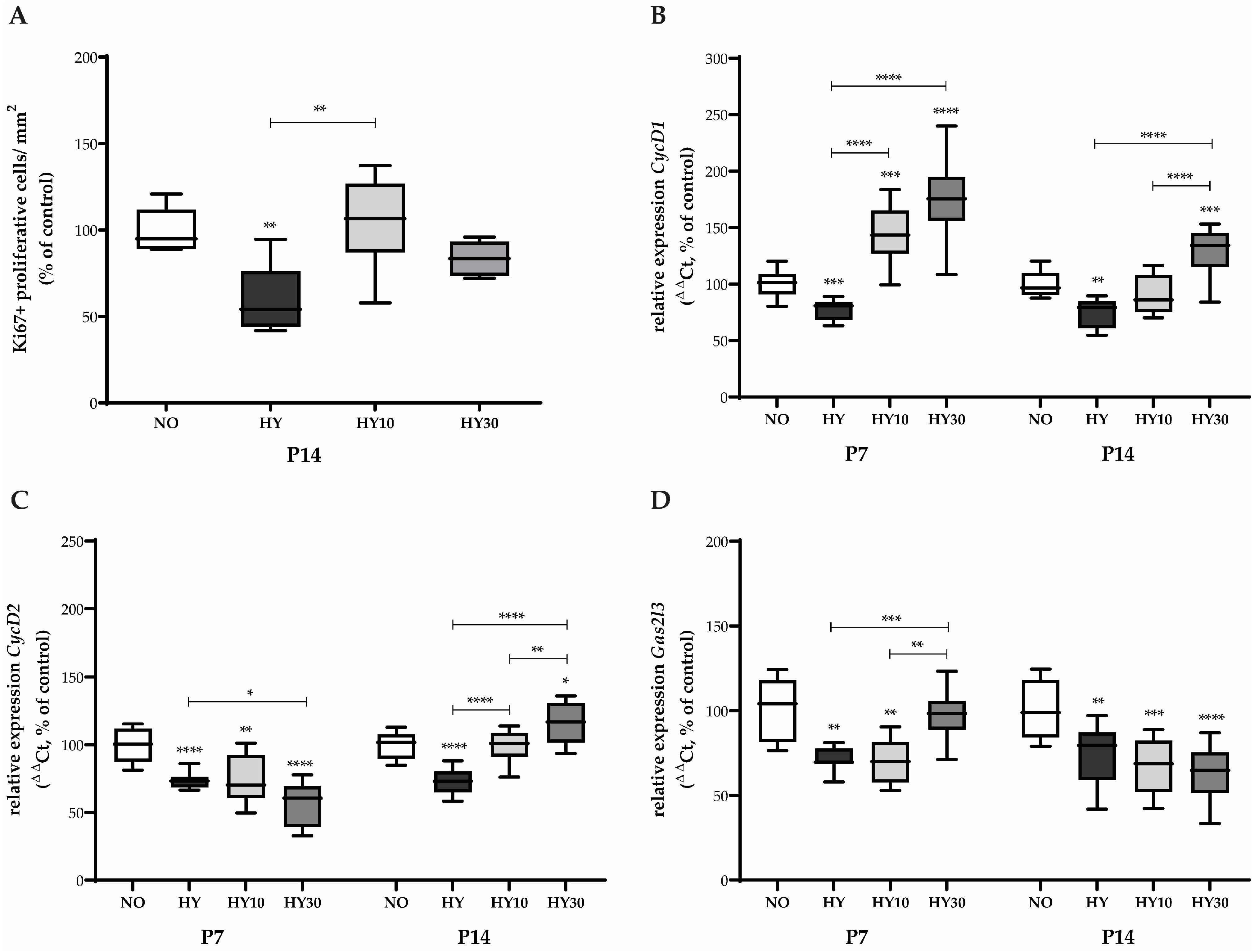 - Giszas, V.; Strauß, E.; Bührer, C.; Endesfelder, S. The Conflicting Role of Caffeine Supplementation on Hyperoxia-Induced Injury on the Cerebellar Granular Cell Neurogenesis of Newborn Rats. Oxid. Med. Cell Longev. 2022, 2022, 5769784. [Google Scholar] [CrossRef]