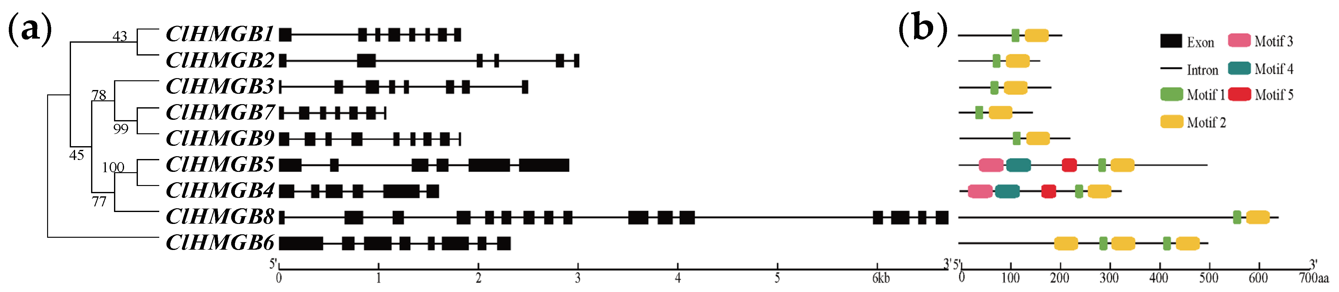 2.1. Identification and Synteny Analysis of the ClHMGB Genes in Watermelon