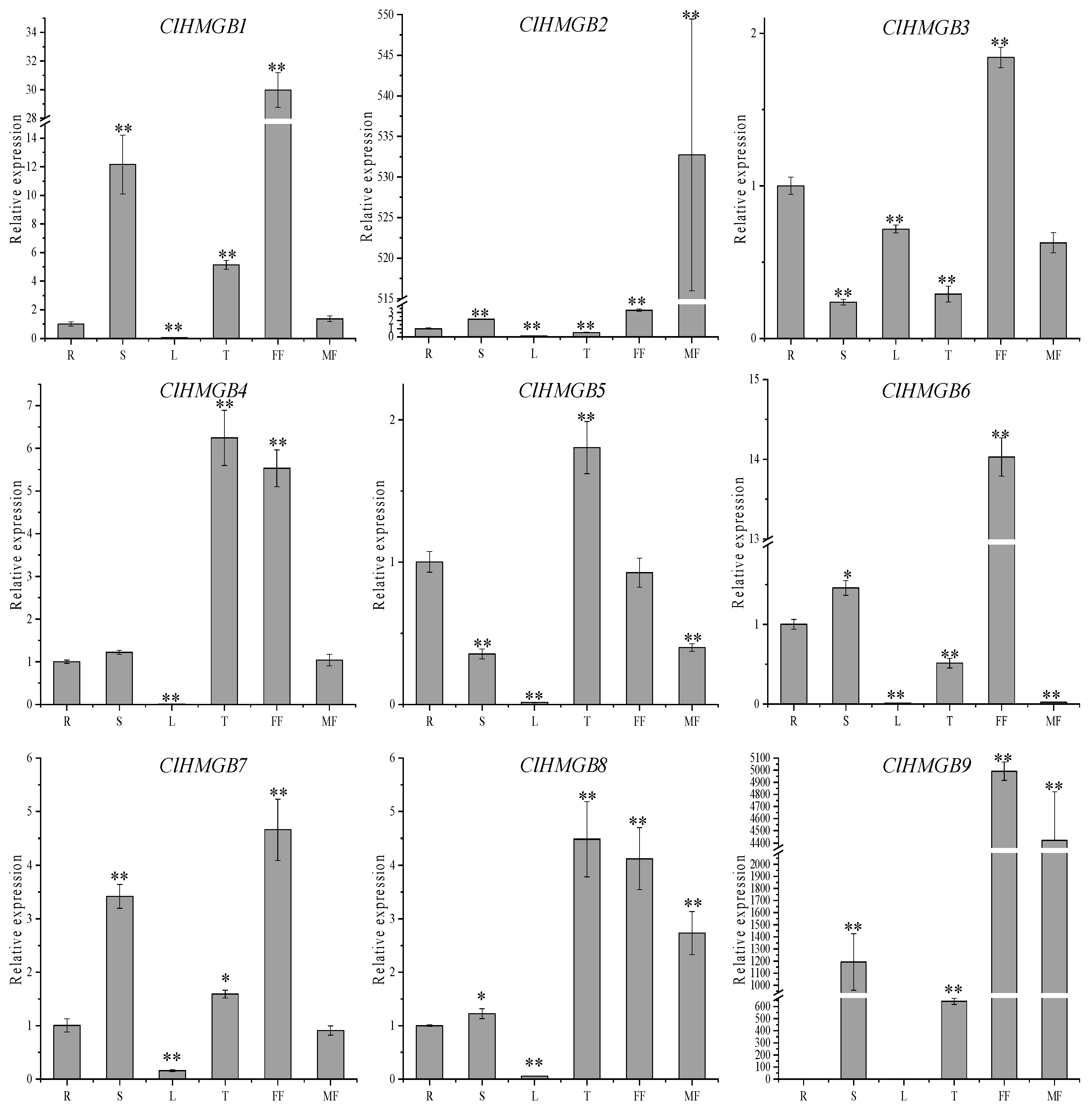 2.4. Profiles of Tissue-Specific Expression Patterns of ClHMGBs
