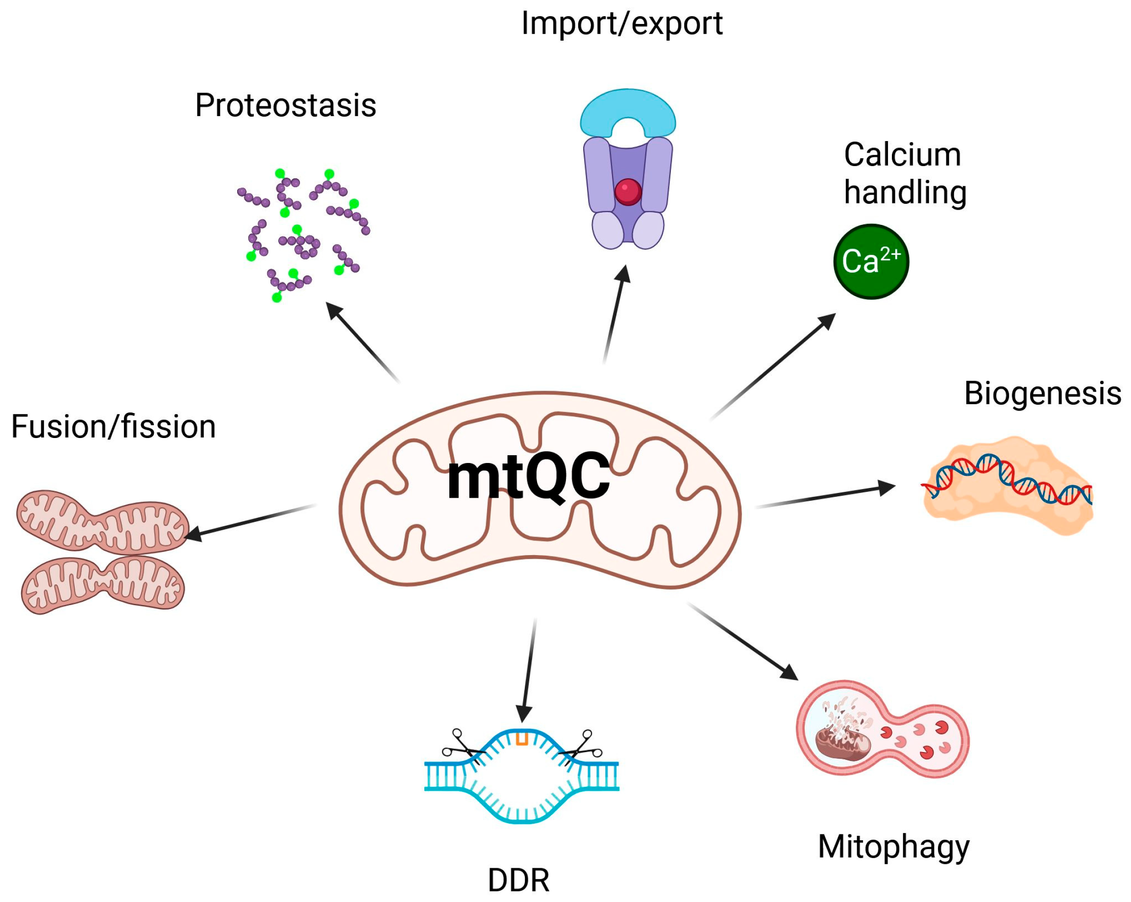 - Ye, L.; Fu, X.; Li, Q. Mitochondrial Quality Control in Health and Disease. MedComm 2025, 6, e70319. [Google Scholar] [CrossRef]