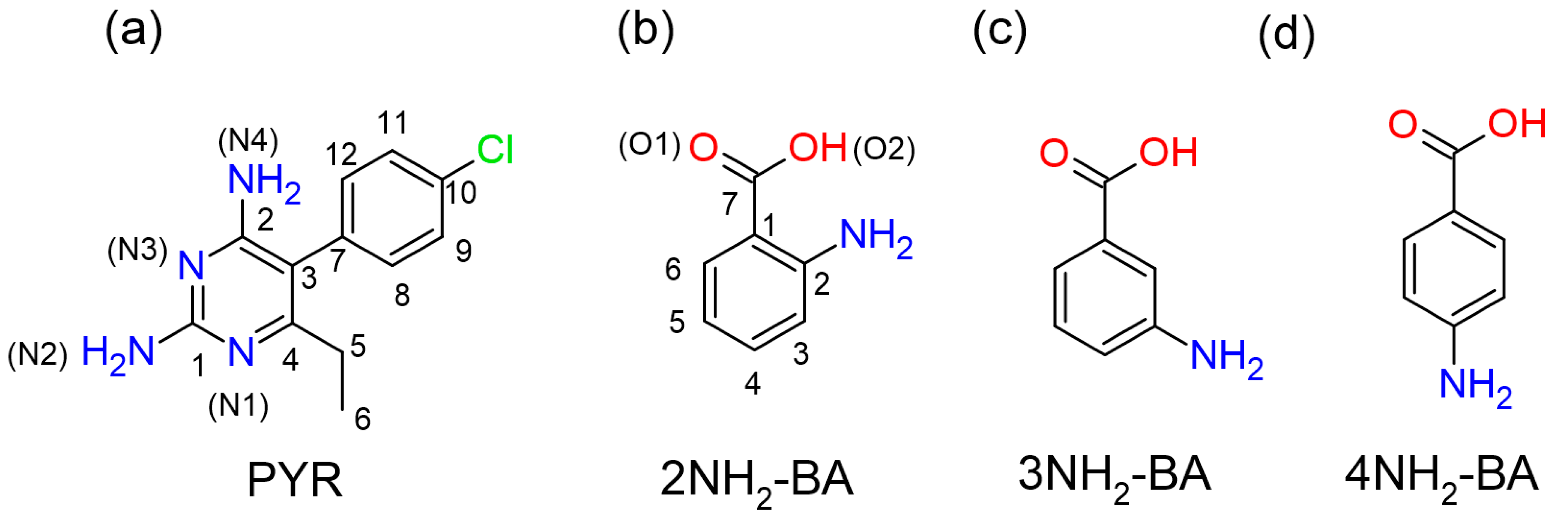 - Faroque, M.U.; Mehmood, A.; Noureen, S.; Ahmed, M. Crystal engineering and electrostatic properties of co-crystals of pyrimethamine with benzoic acid and gallic acid. J. Mol. Struc. 2020, 1214, 128183. [Google Scholar] [CrossRef]
