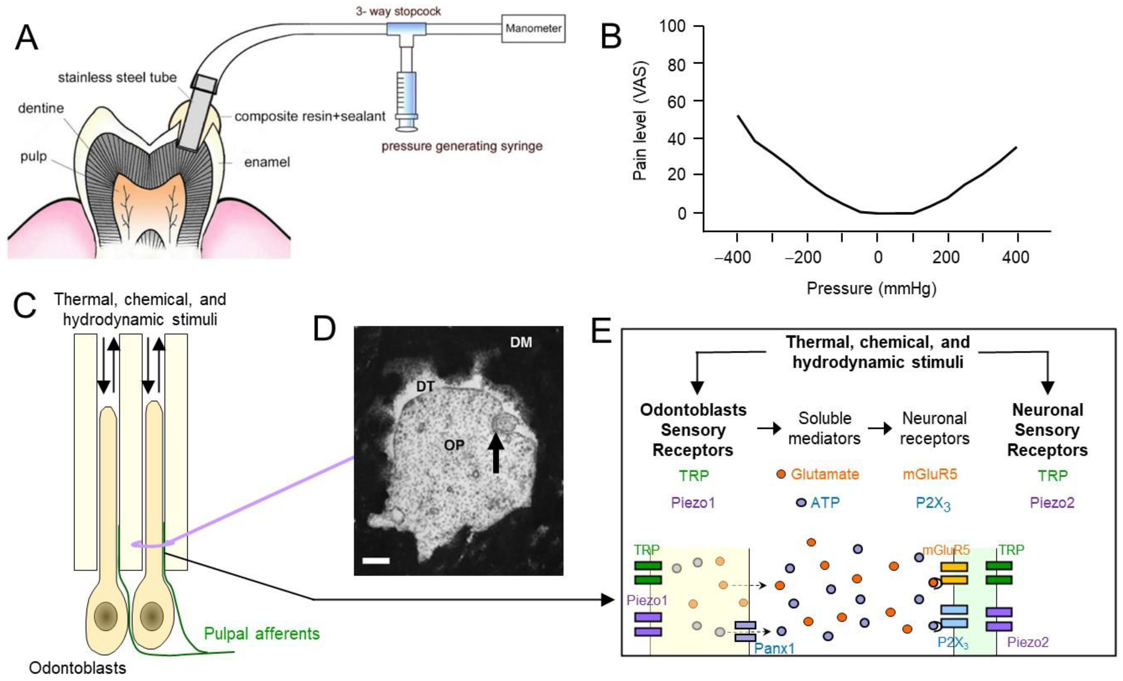 - Ohyama, S.; Ouchi, T.; Kimura, M.; Kurashima, R.; Yasumatsu, K.; Nishida, D.; Hitomi, S.; Ubaidus, S.; Kuroda, H.; Ito, S.; et al. Piezo1-pannexin-1-P2X(3) axis in odontoblasts and neurons mediates sensory transduction in dentinal sensitivity. Front. Physiol. 2022, 13, 891759. [Google Scholar] [CrossRef]