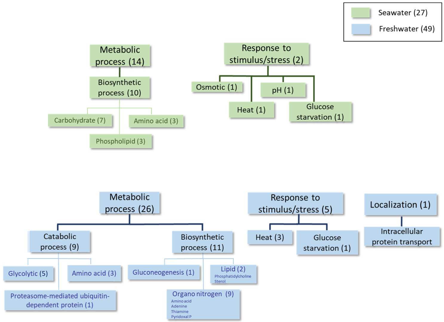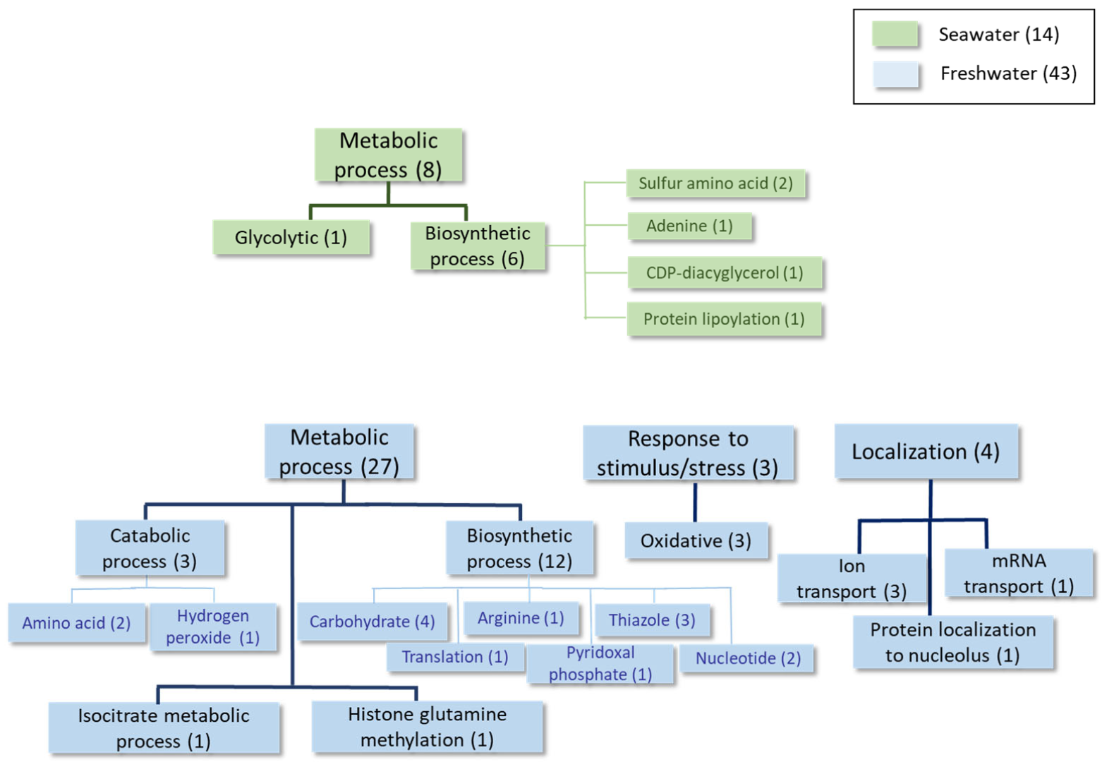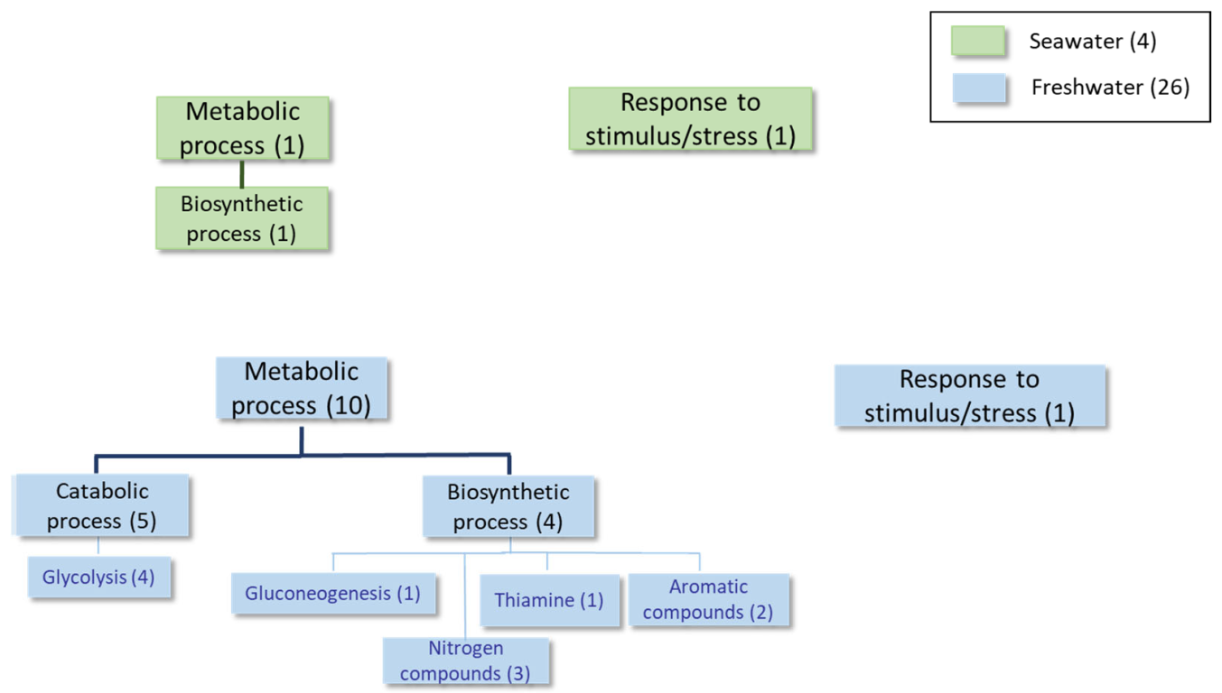 | Protein Organism Recommended Name | Biological Process | Similar Proteins 1 | Fold Change (Seawater/Freshwater) |