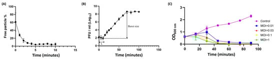 Adsorption efficiency (%) = (Initial phage titer − Unadorbed phage titer)/initial phage titer × 100