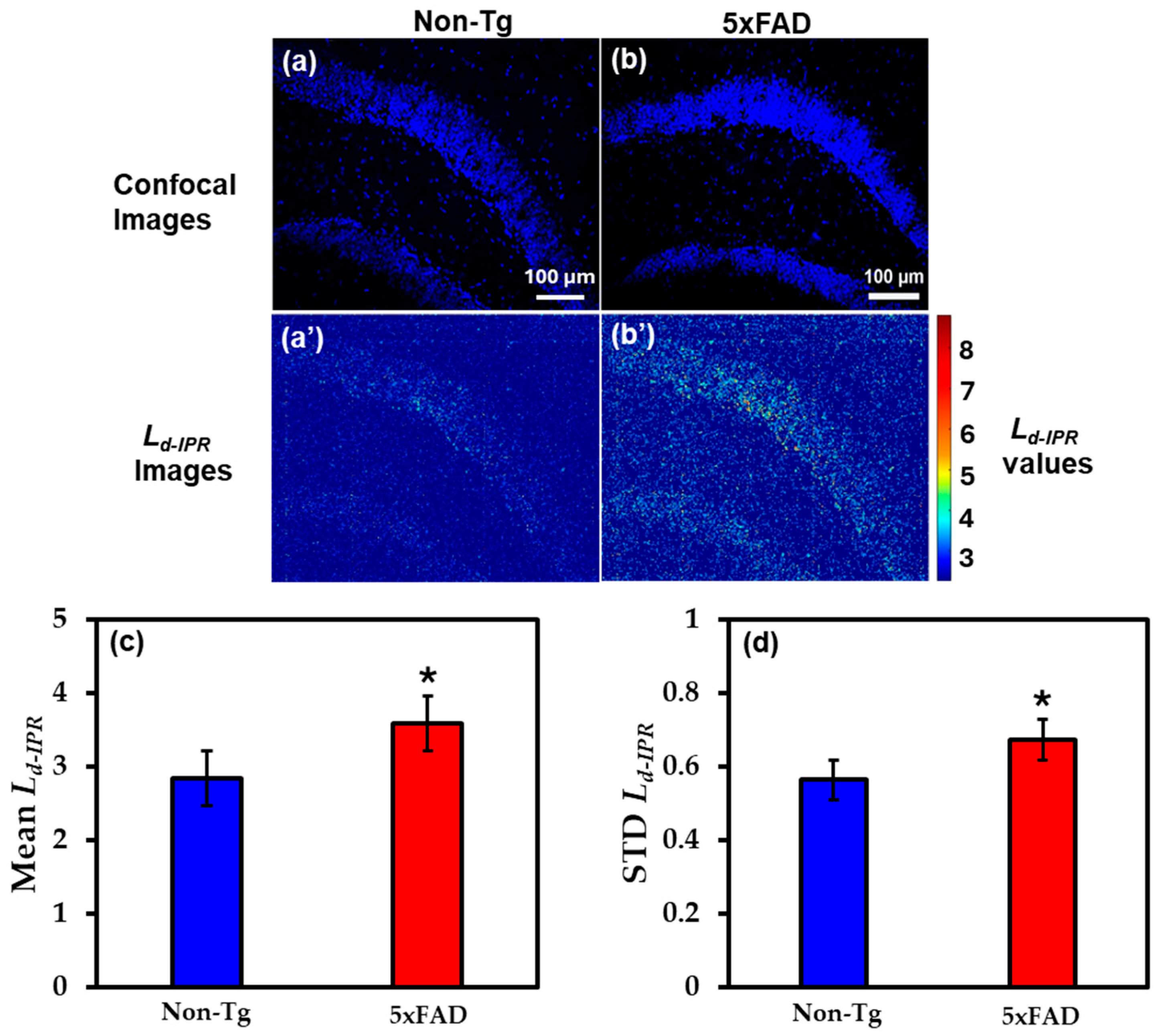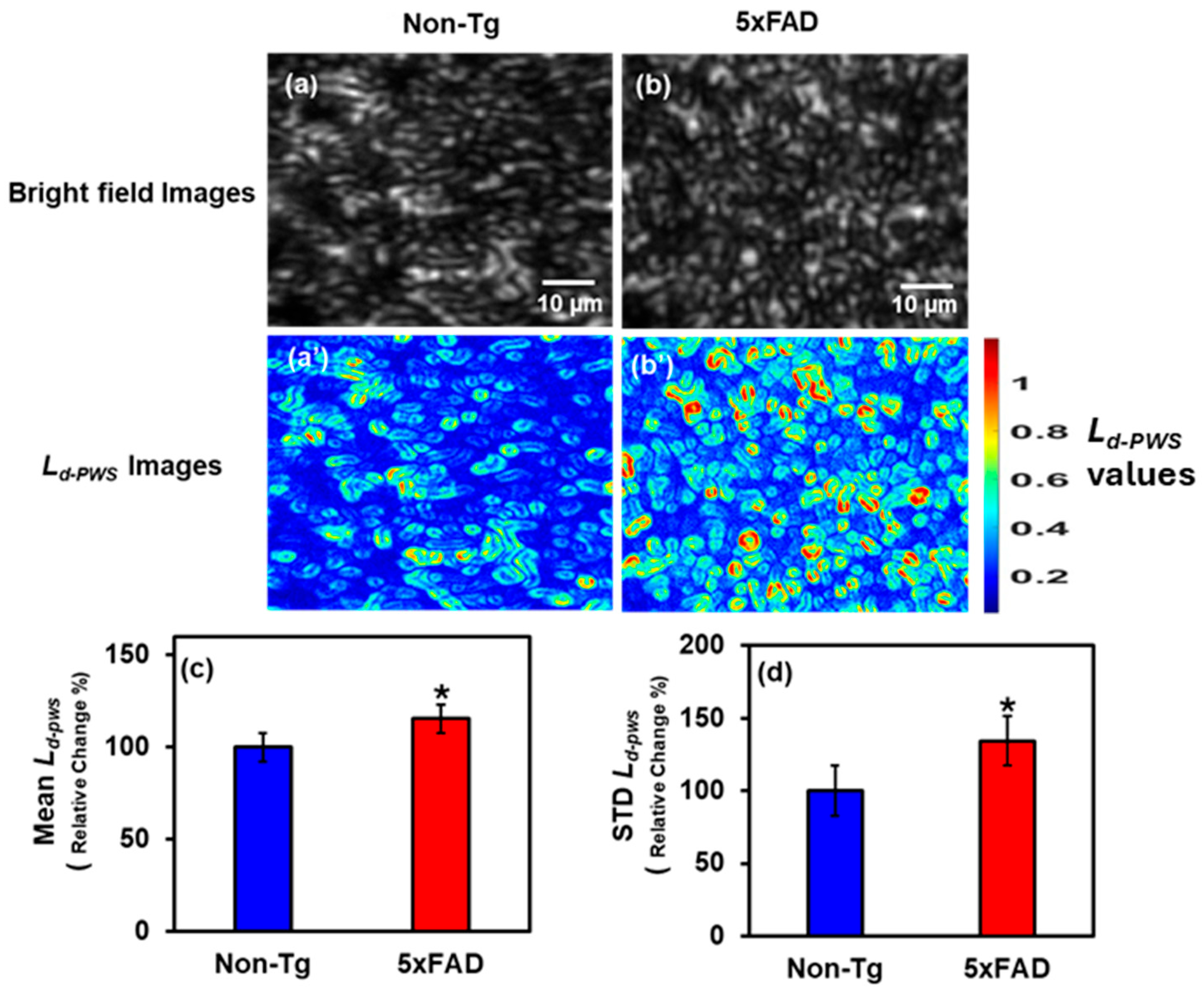 - Alharthi, F.; Apachigawo, I.; Solanki, D.; Khan, S.; Singh, H.; Khan, M.M.; Pradhan, P. Dual Photonics Probing of Nano- to Submicron-Scale Structural Alterations in Human Brain Tissues/Cells and Chromatin/DNA with the Progression of Alzheimer’s Disease. Int. J. Mol. Sci. 2024, 25, 12211. [Google Scholar] [CrossRef]