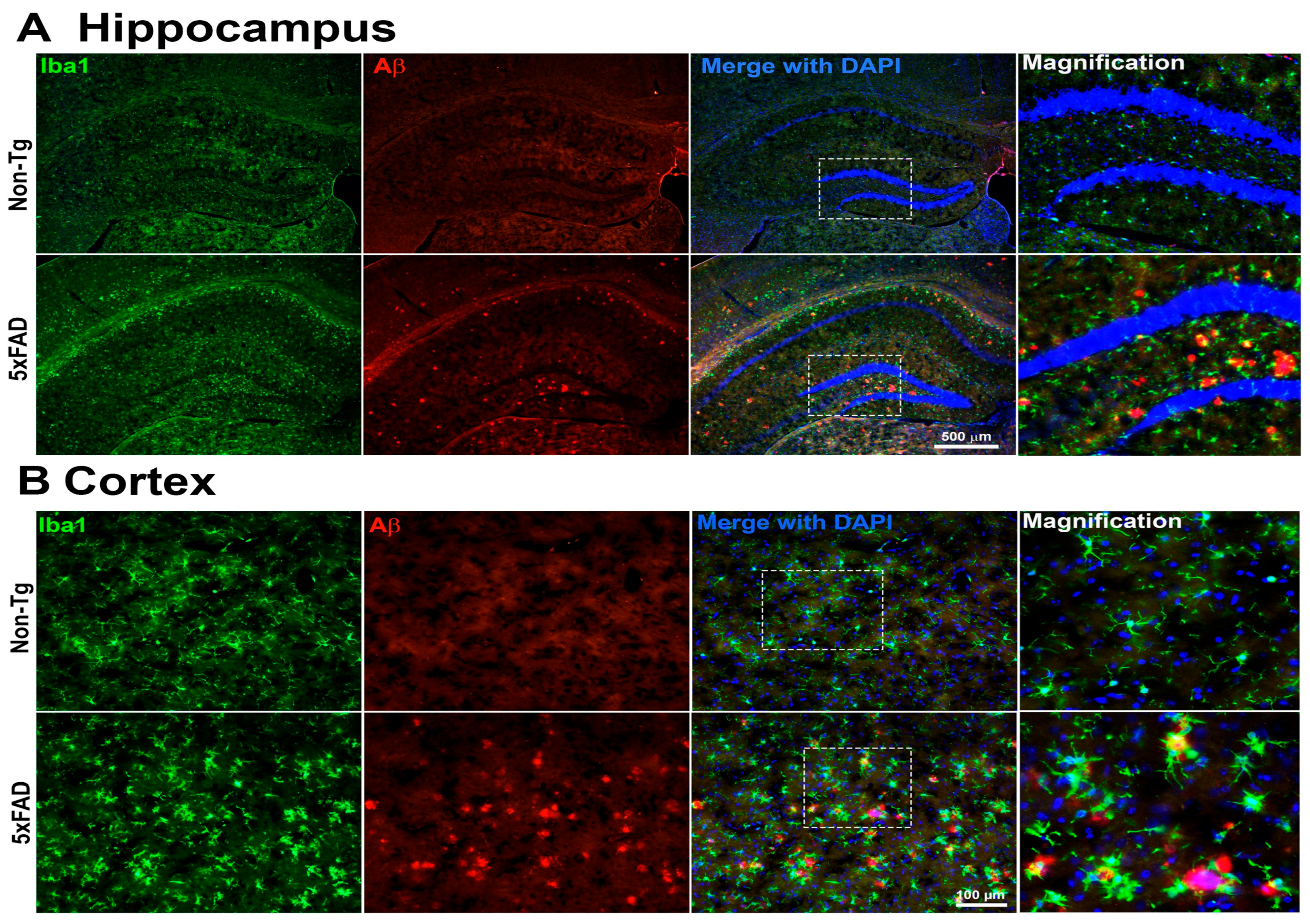 Microglial Activation and Aβ Accumulation in the Brain of 5xFAD Mice
