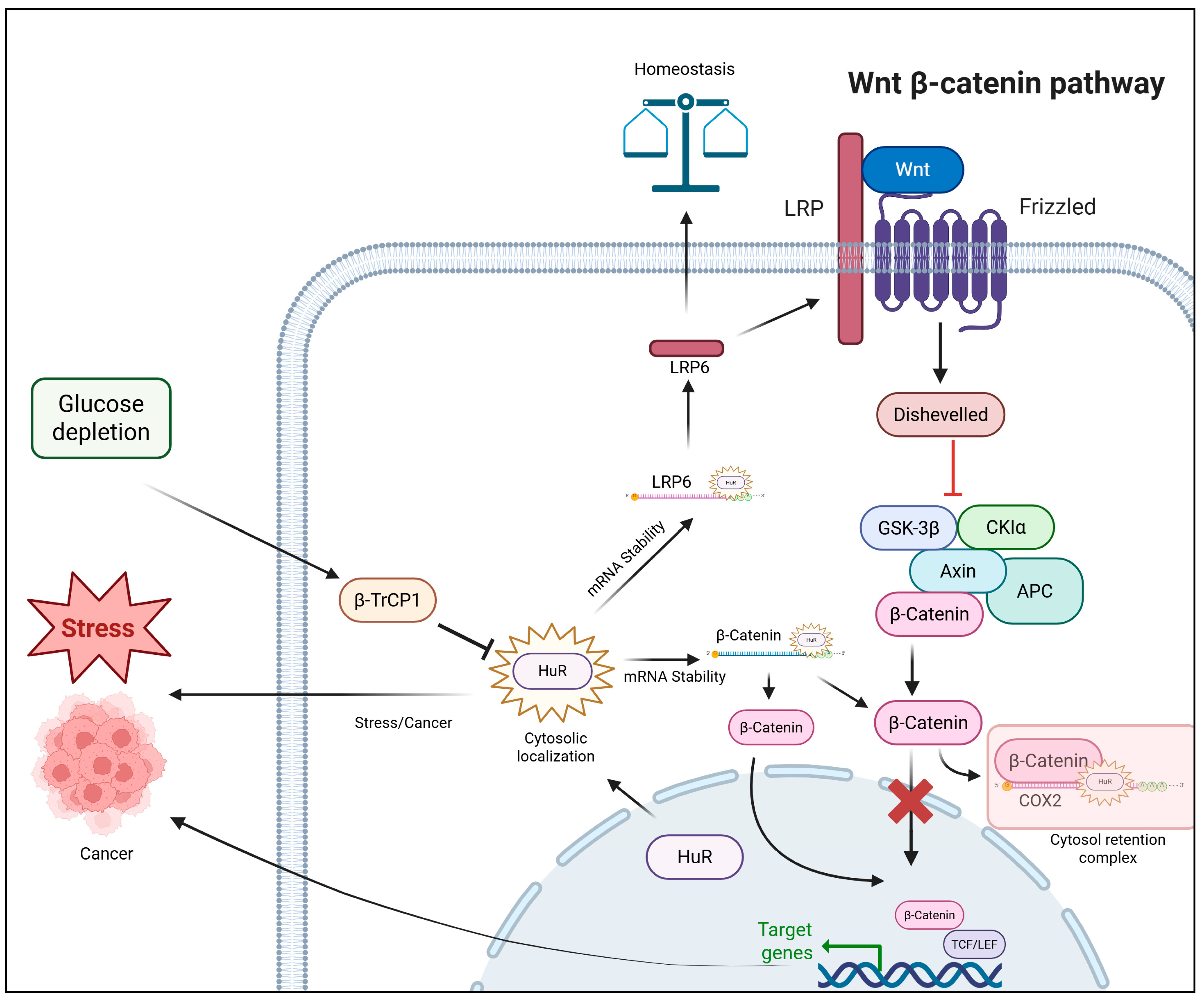- Kim, I.; Hur, J.; Jeong, S. HuR represses Wnt/β-catenin-mediated transcriptional activity by promoting cytoplasmic localization of β-catenin. Biochem. Biophys. Res. Commun. 2015, 457, 65–70. [Google Scholar] [CrossRef]