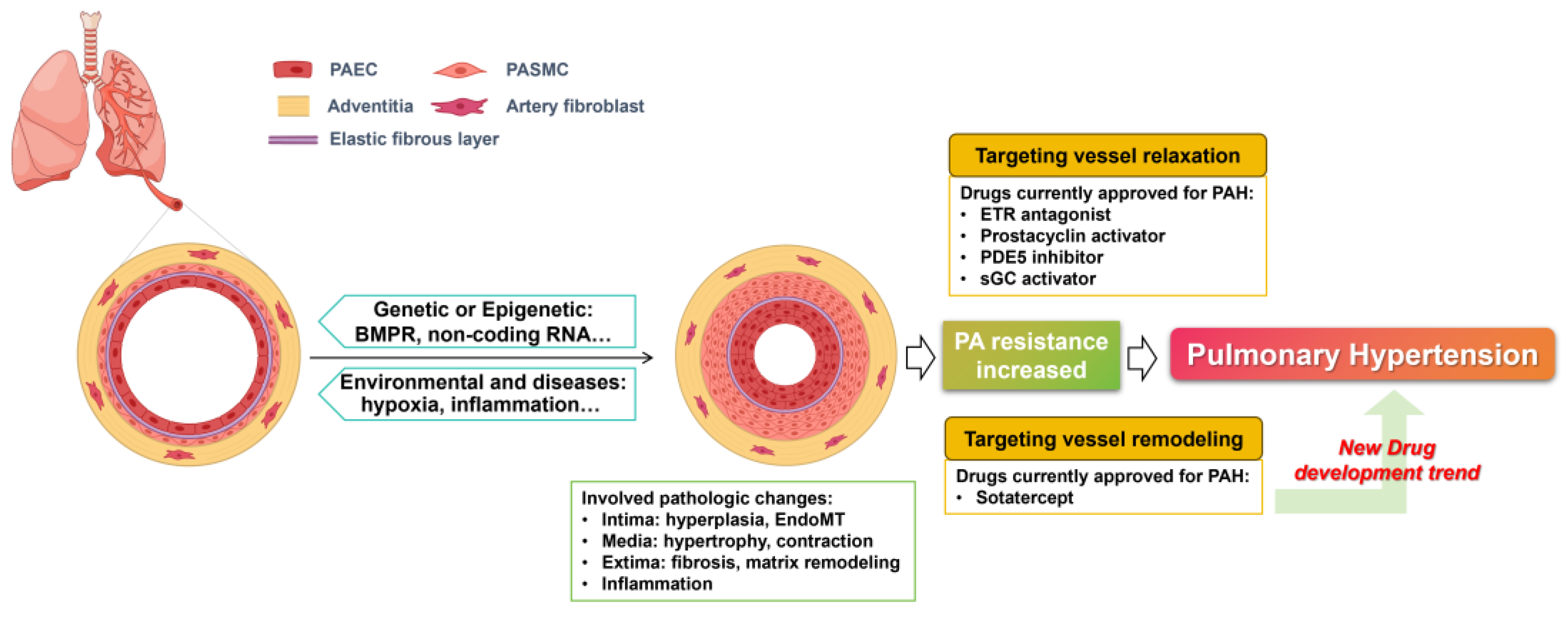 1.1. Pulmonary Arterial Remodeling Is the Key Pathological Factor for PH