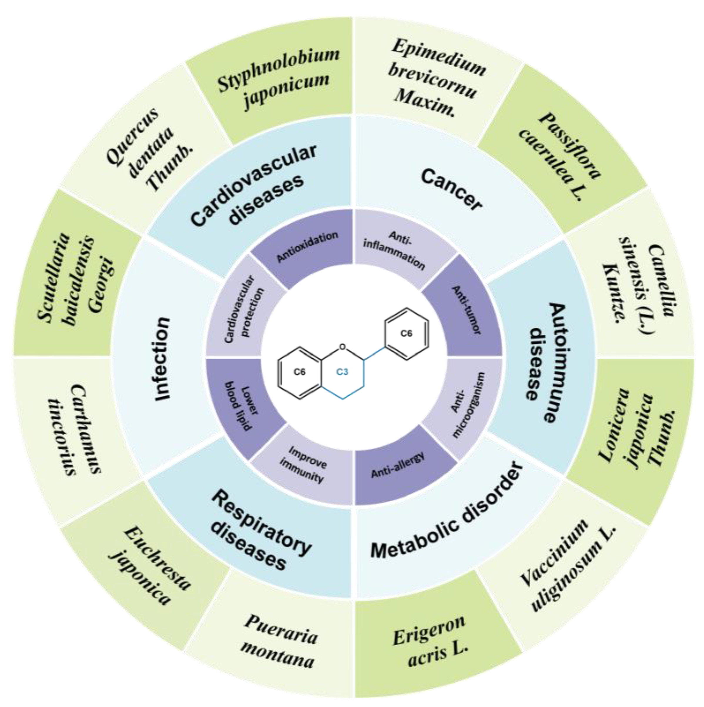 | Pinocembrin | Dihydroflavone | ![]() | MCT rats | i.p. 50 mg/kg/d | Improves the therapeutic efficacy of endothelial progenitor cells in PH rats; inhibits atrial fibrillation | [76,77] |