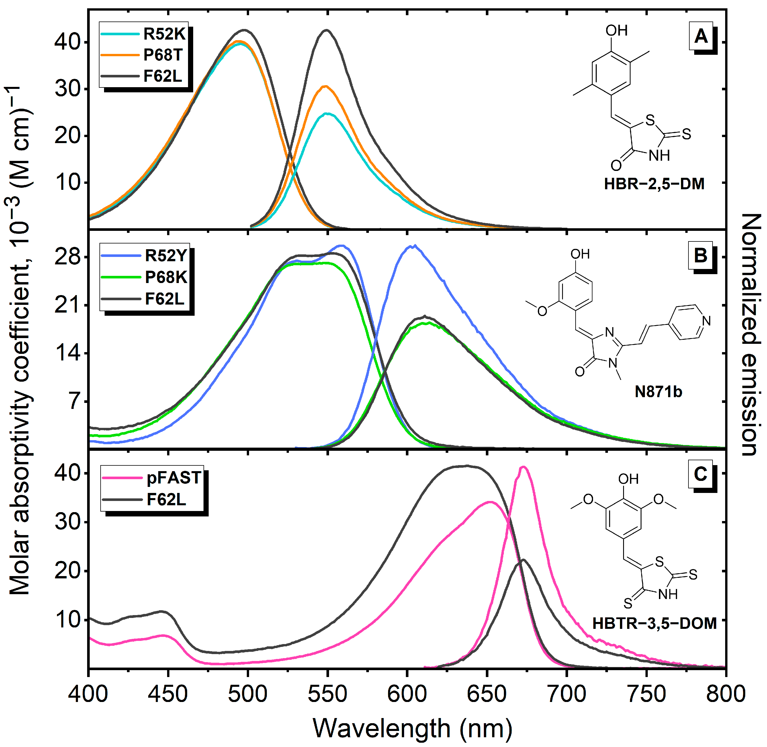 HPAR family contained an additional multiple bond in the arylidene fragment, which necessitated the development of specific FAST protein variants with an enlarged binding pocket [