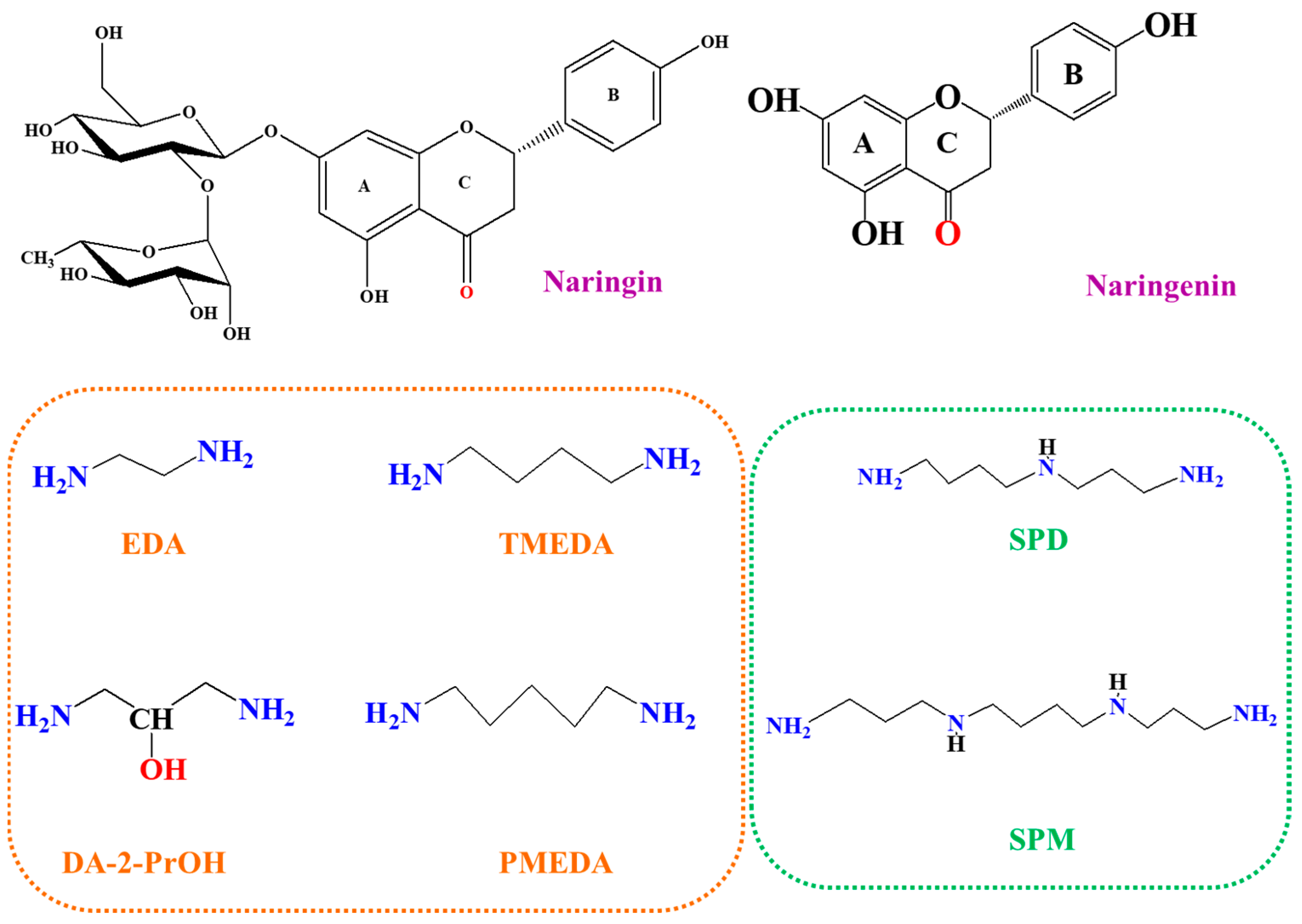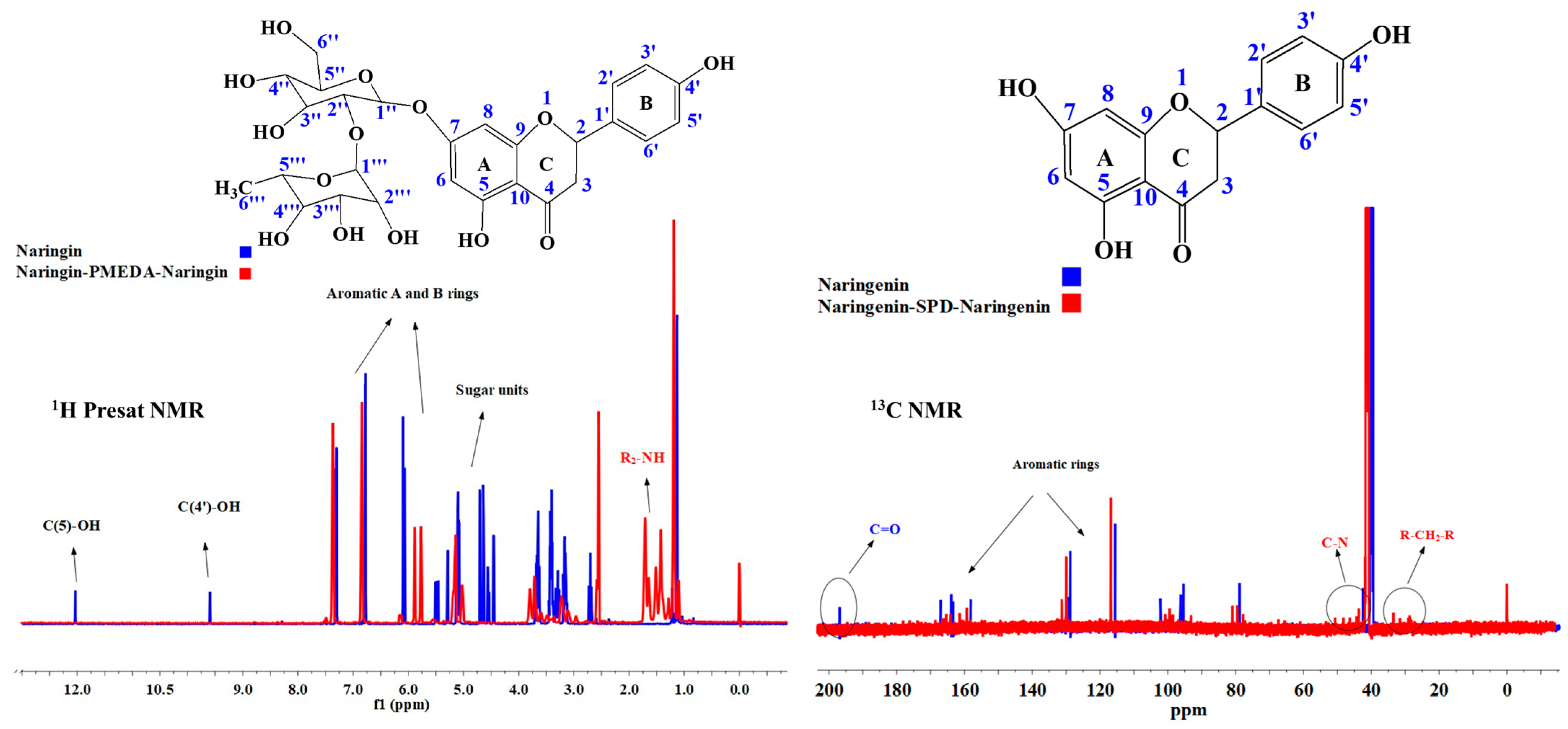 | Naringenin-PMEDA-Naringenin | 3418/3154 | 2941 | 1589 | 1177–1021 | 297/386 | 18,327/5942 |