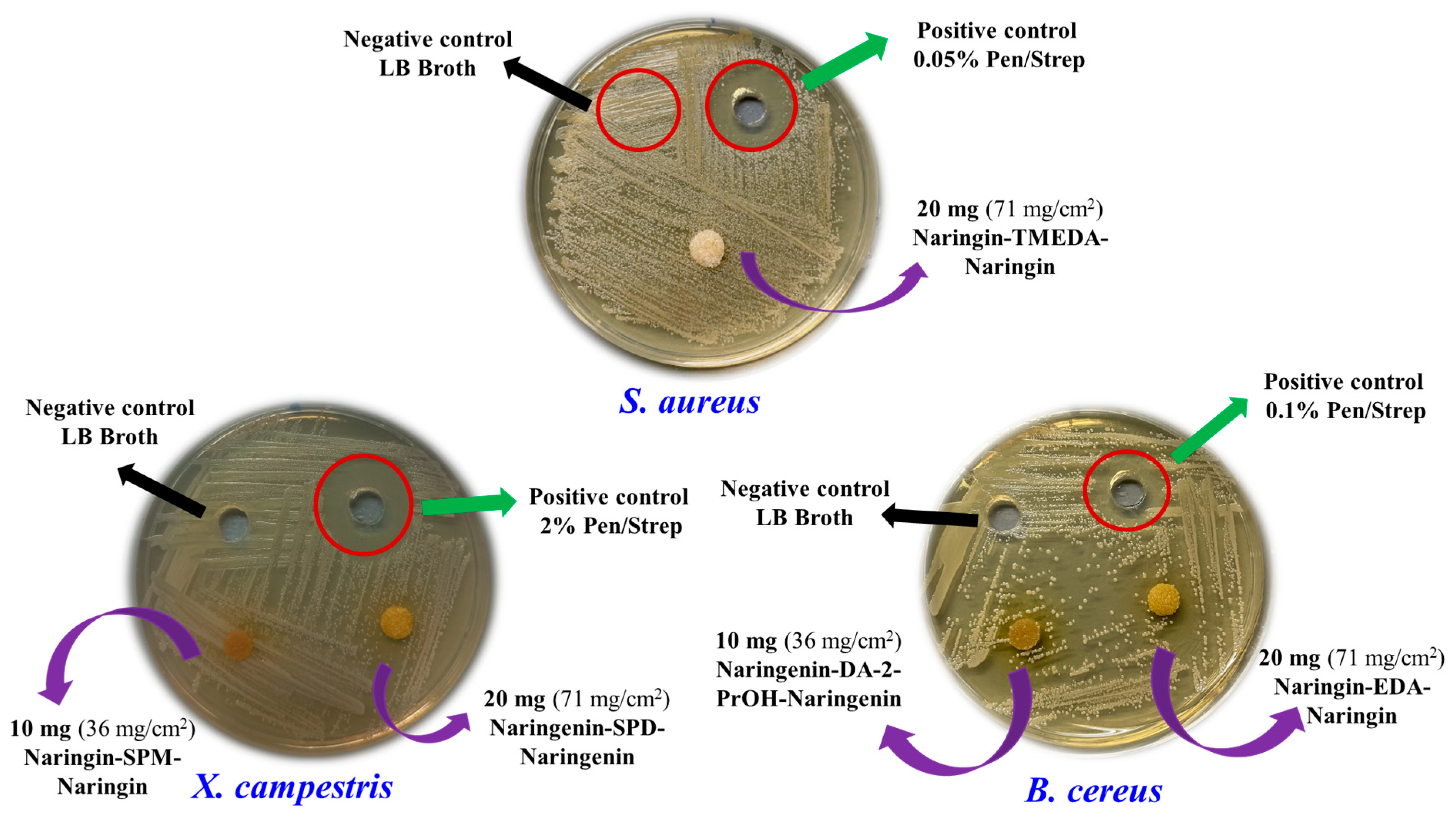 | Naringenin-TMEDA-Naringenin | 10 mg (36 mg/cm2) 19.9 ± 0.1 | Naringenin | 9.1 mg (33 mg/cm2) n.e.z. |