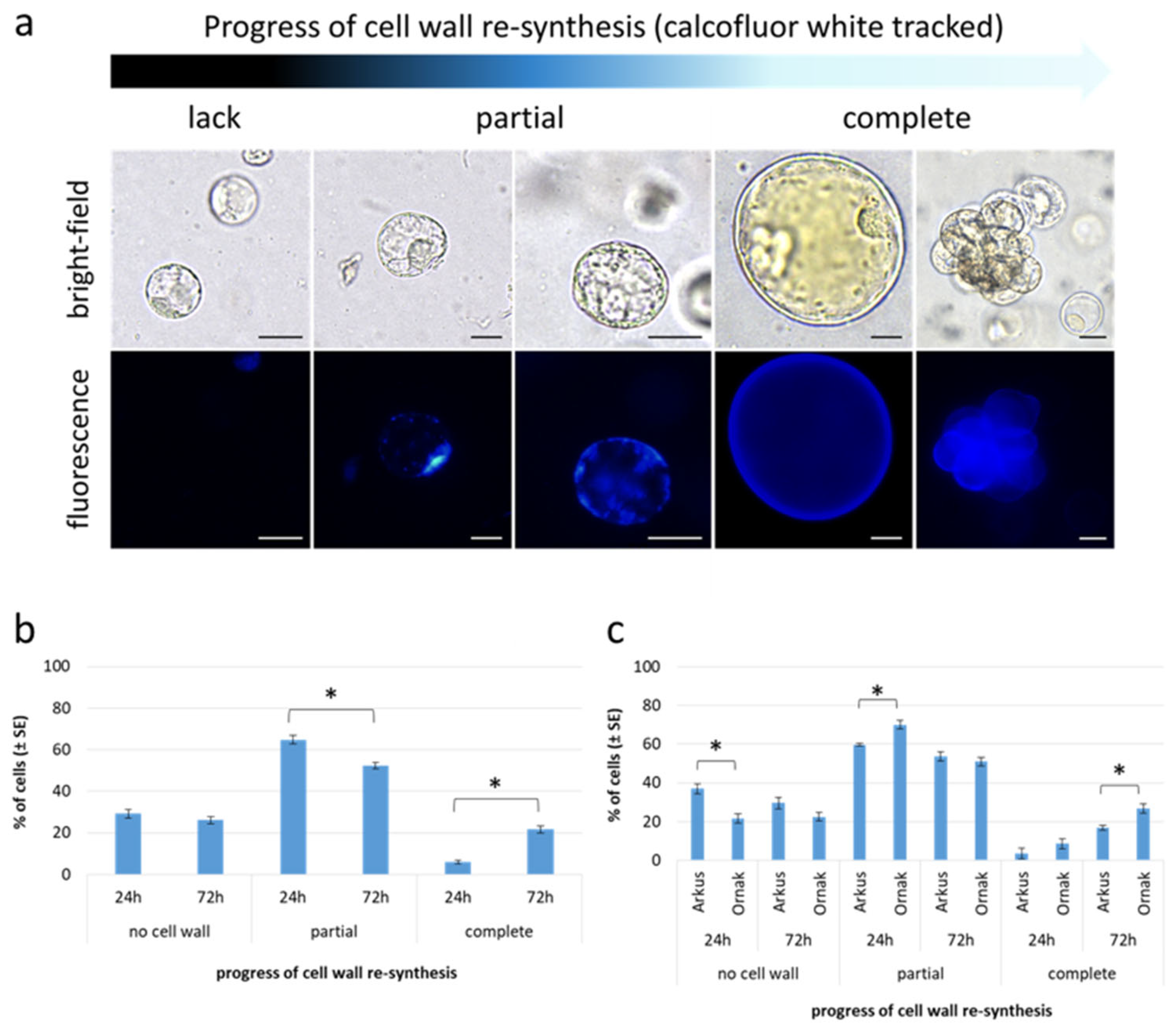- Pasternak, T.; Lystvan, K.; Betekhtin, A.; Hasterok, R. From single cell to plants: Mesophyll protoplasts as a versatile system for investigating plant cell reprogramming. Int. J. Mol. Sci. 2020, 21, 4195. [Google Scholar] [CrossRef]