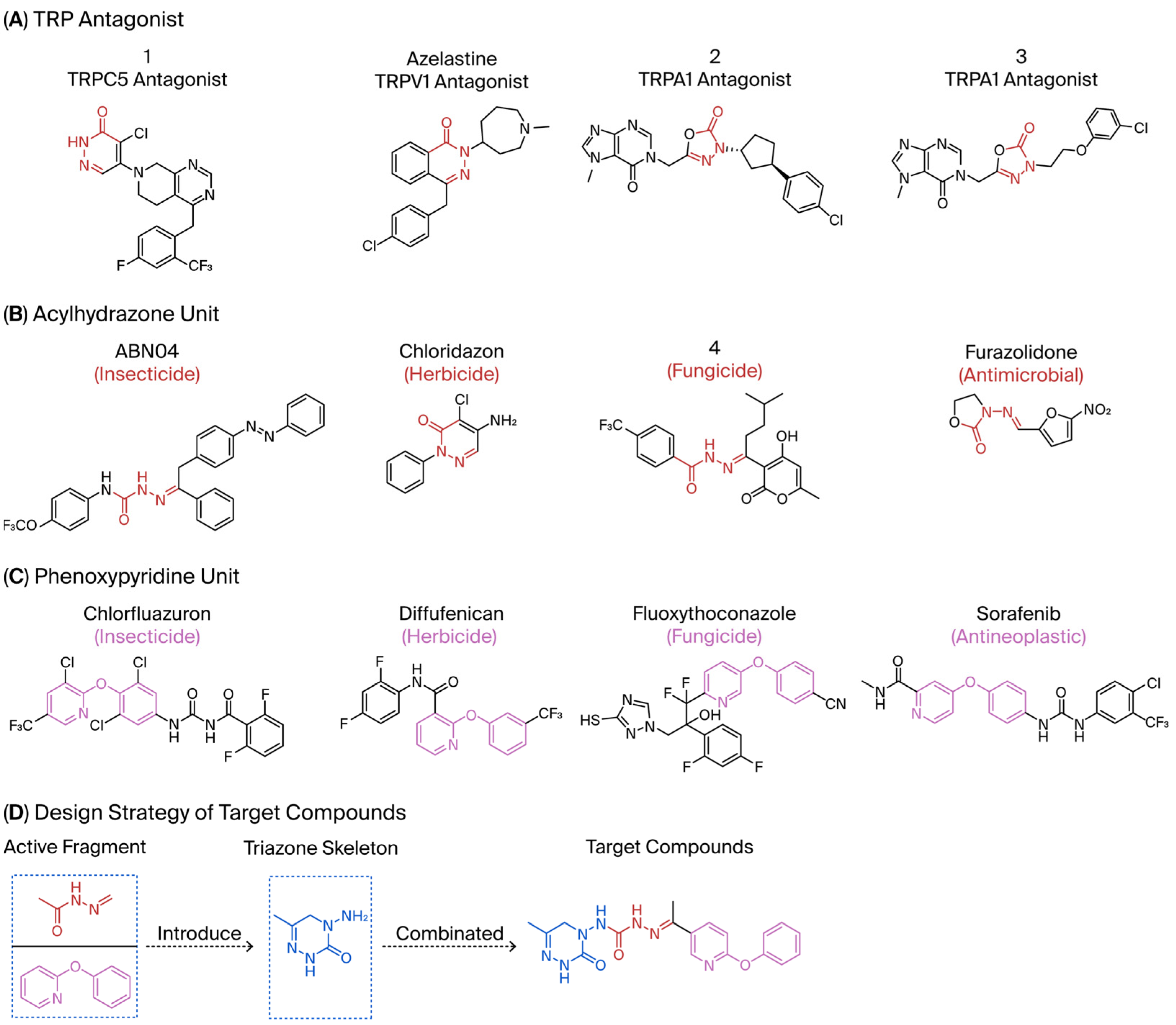 - Yang, Y.; Liu, Y.X.; Song, H.J.; Li, Y.Q.; Wang, Q.M. Design, synthesis, insecticidal activity, and structure-activity relationship (SAR): Studies of novel triazone derivatives containing a urea bridge group based on transient receptor potential (TRP) channels. Mol. Divers. 2016, 20, 919–936. [Google Scholar] [CrossRef]