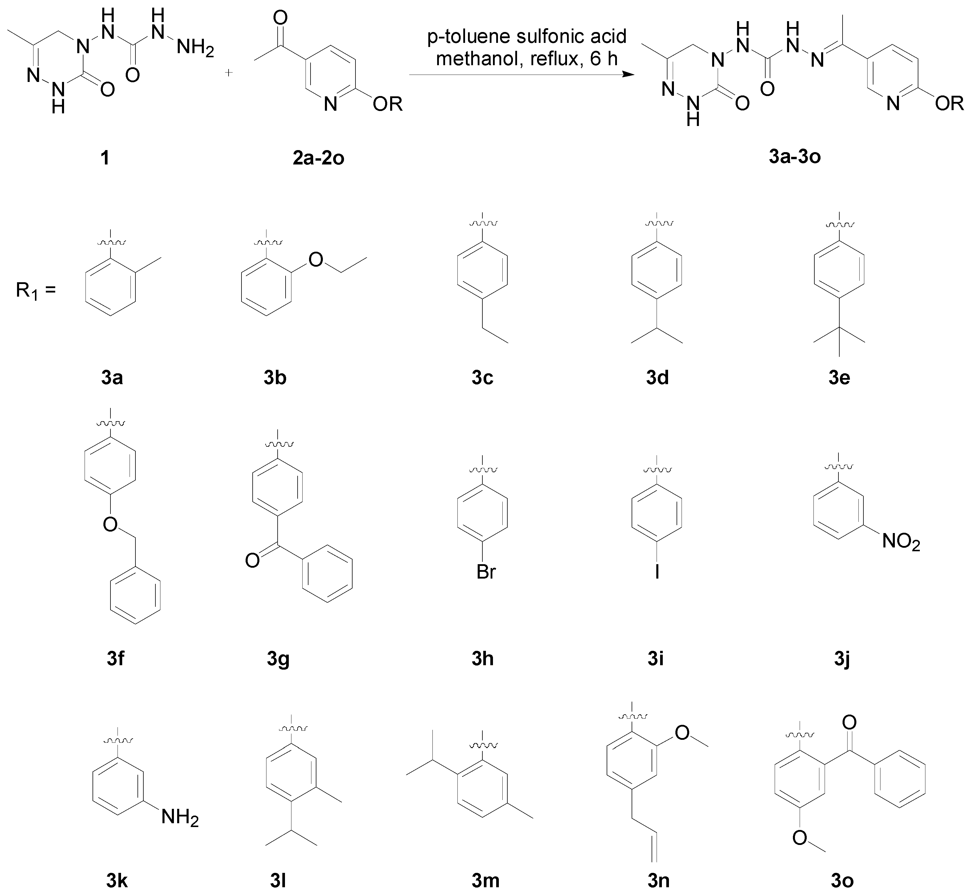 - Yang, Y.; Cui, P.P. Synthesis and insecticidal/fungicidal activities of triazone derivatives containing acylhydrazone moieties. Molecules 2025, 30, 340. [Google Scholar] [CrossRef]