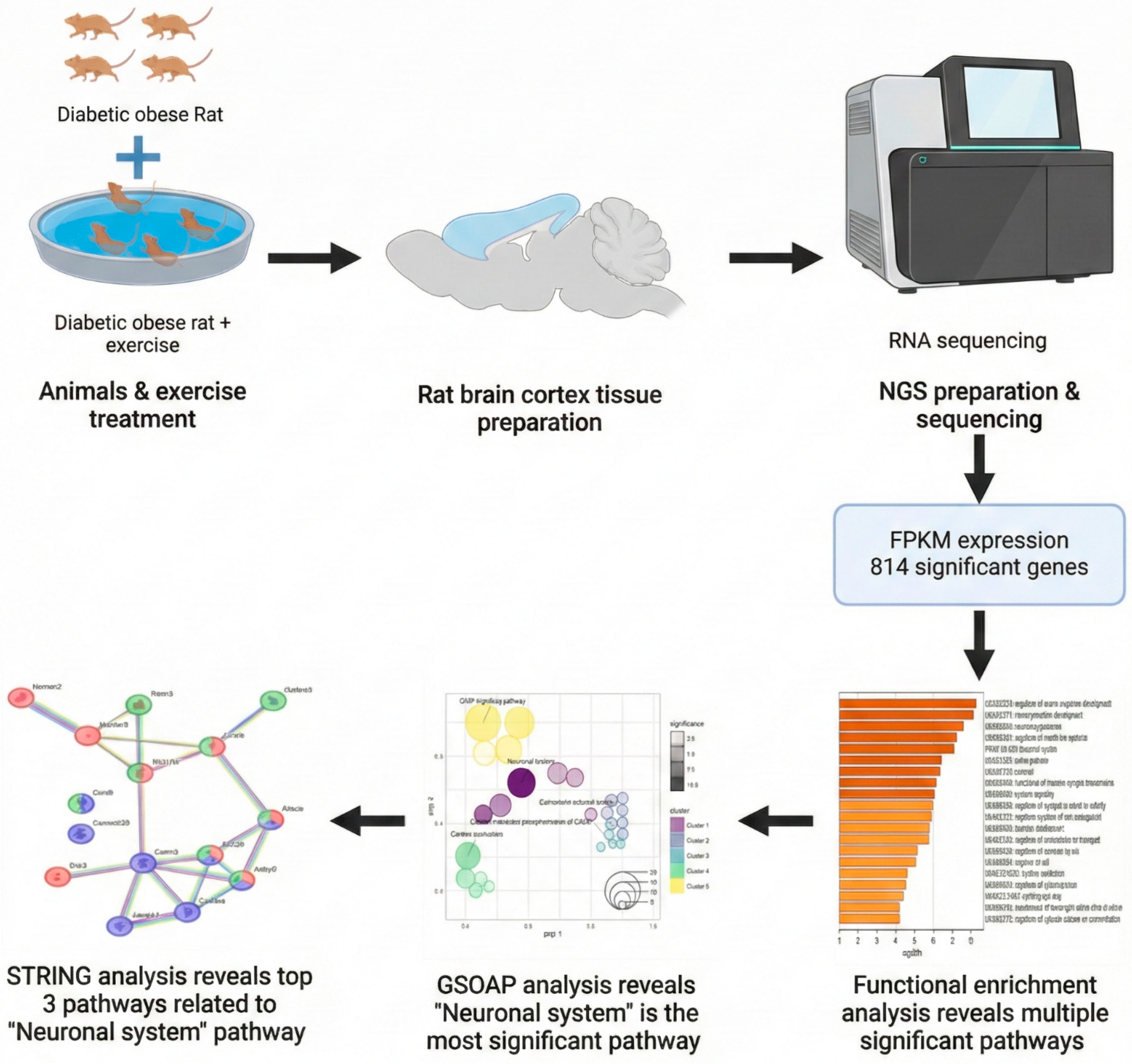 10]. Despite these benefits, the molecular pathways through which exercise training modulates cortical function under diabetic–obese conditions remain poorly characterized.