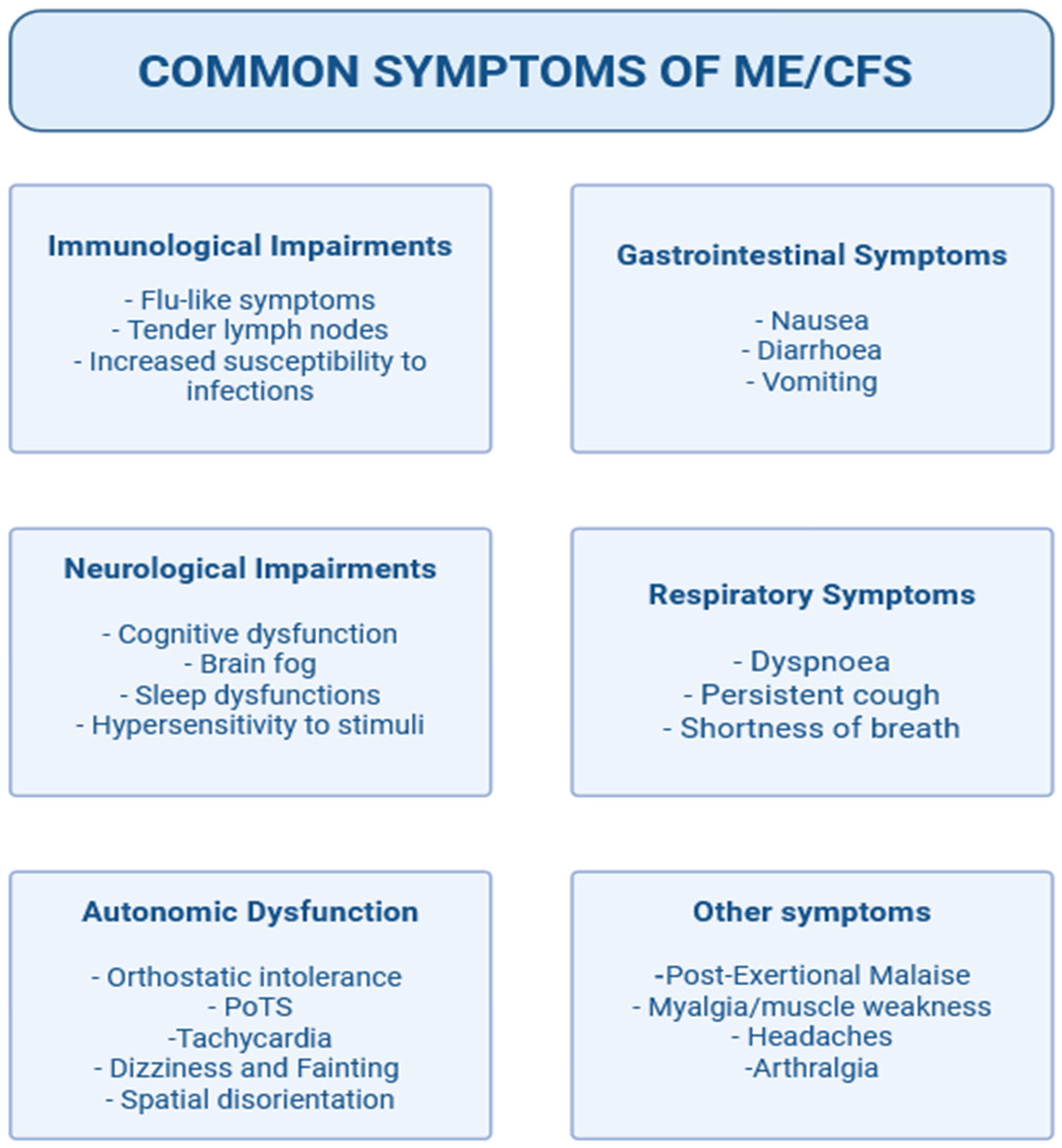 | 2011—International Consensus (ICC) | Post-exertional neuroimmune exhaustion (PENE) + ≥1 neurological, ≥3 immune/GI/GU, ≥1 energy production symptom | No duration requirement | Focused on biological abnormalities; defines severity levels (mild → very severe) | [9] |