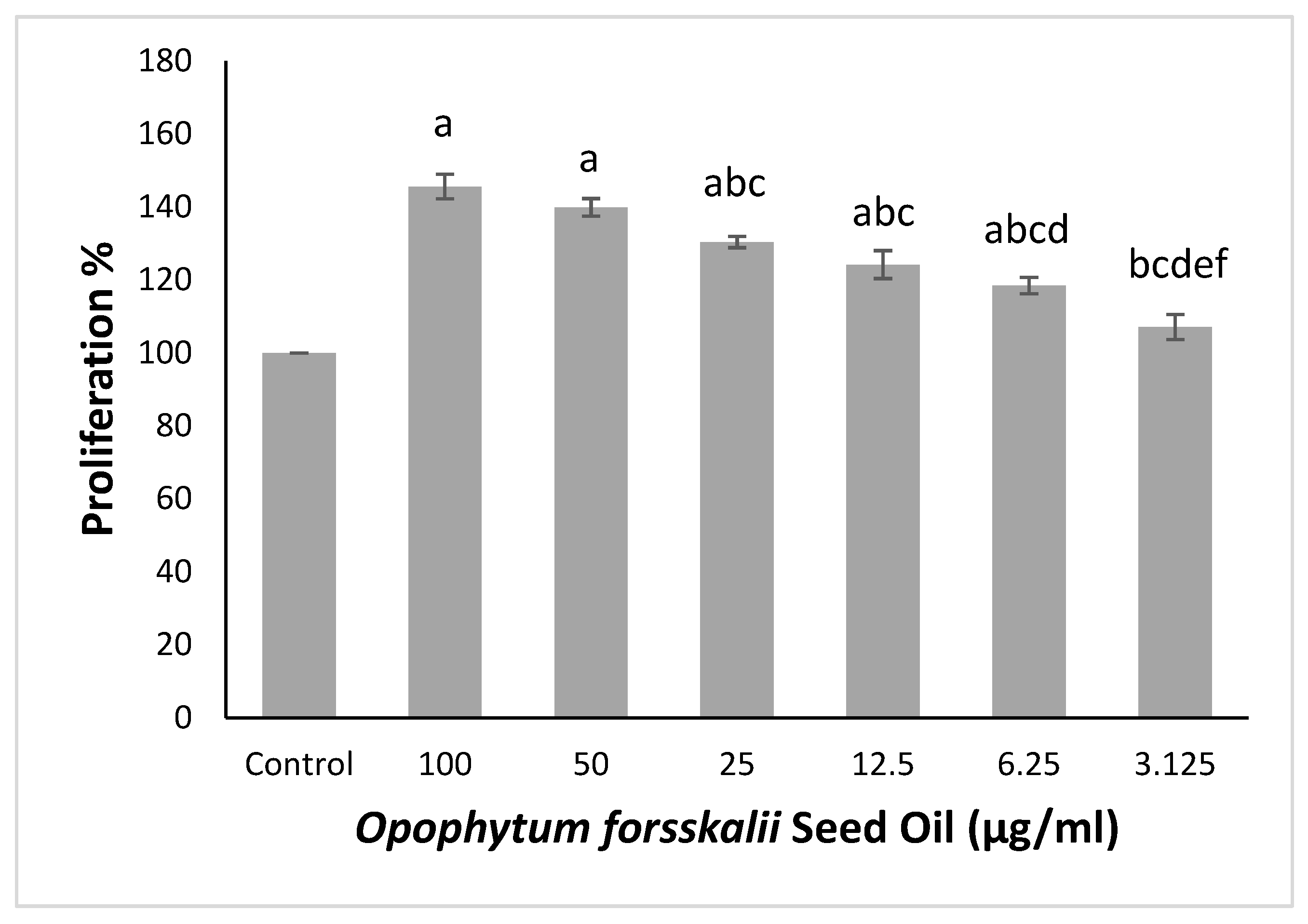 2.2.1. Effect of OFSO on NHDFs Cell Viability