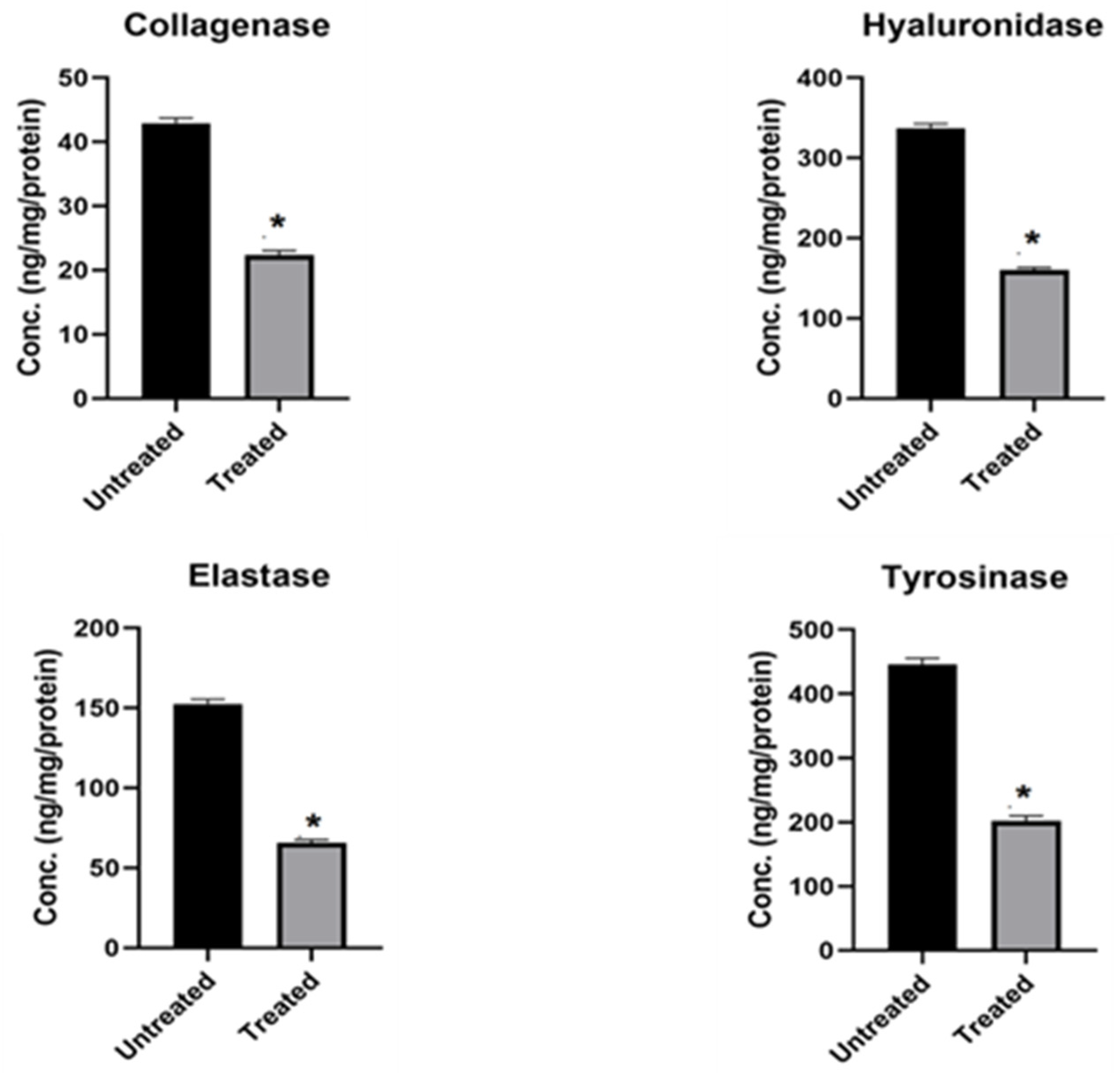 4.4.3. Modulation of Skin Aging-Related Enzymes