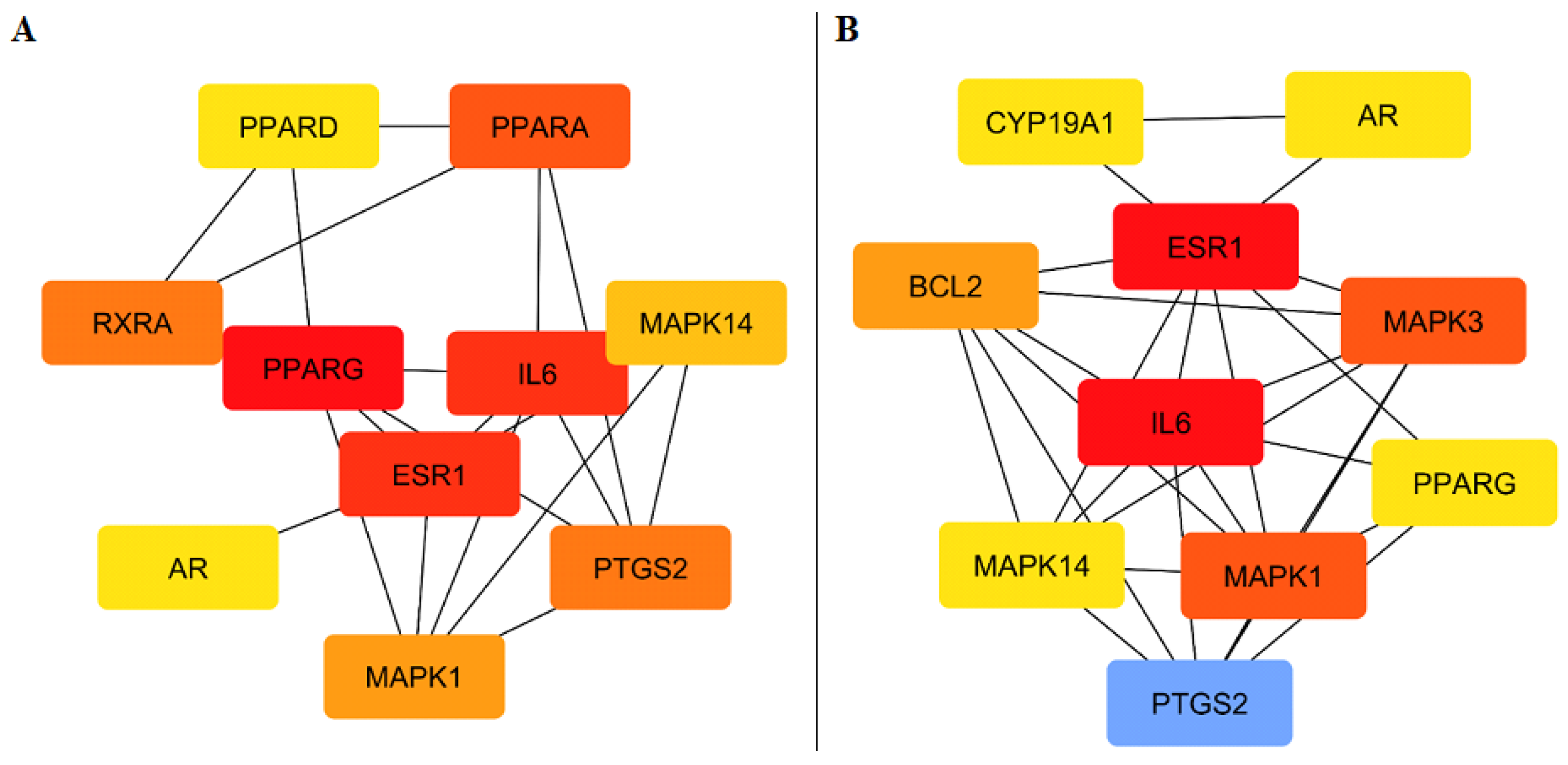 4.7.4. Protein–Protein Interaction (PPI) Network Construction and Hub Gene Analysis