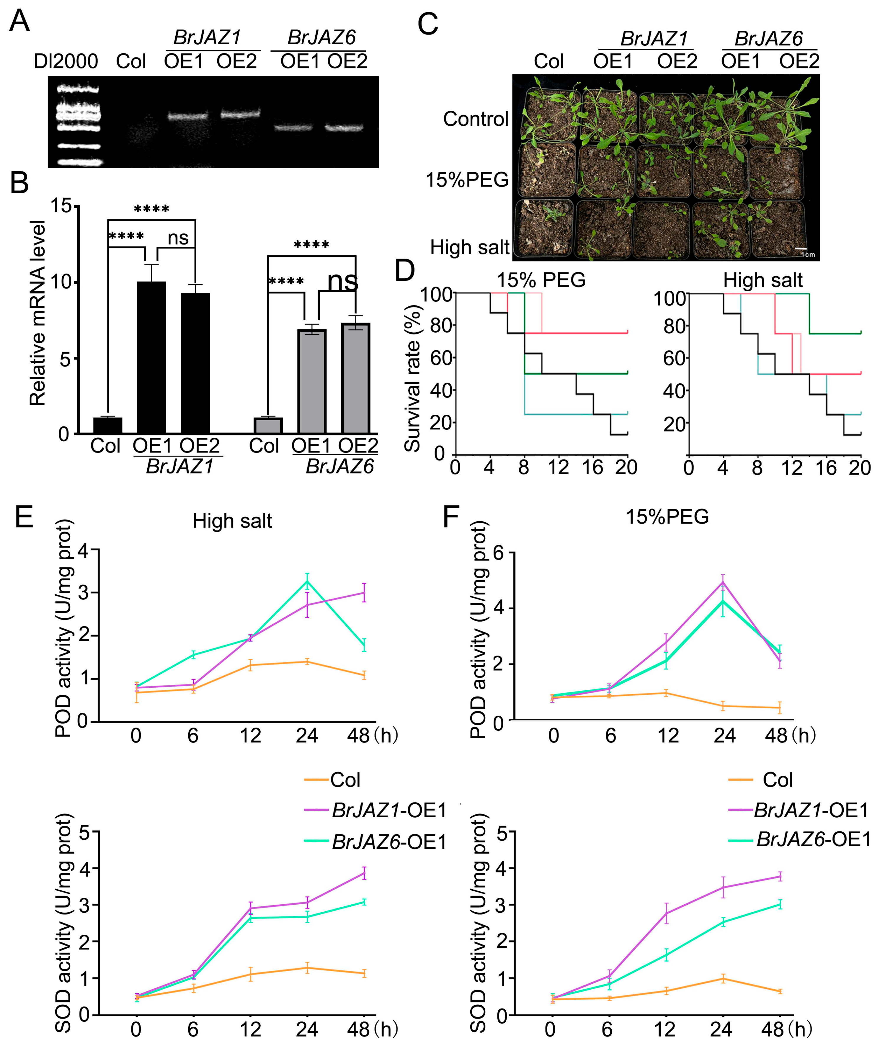 2.7. The Phenotypic Characteristics of Over-Expressed BrJAZ1a and BrJAZ6b Transgenic A. thaliana Lines Under Abiotic Stresses