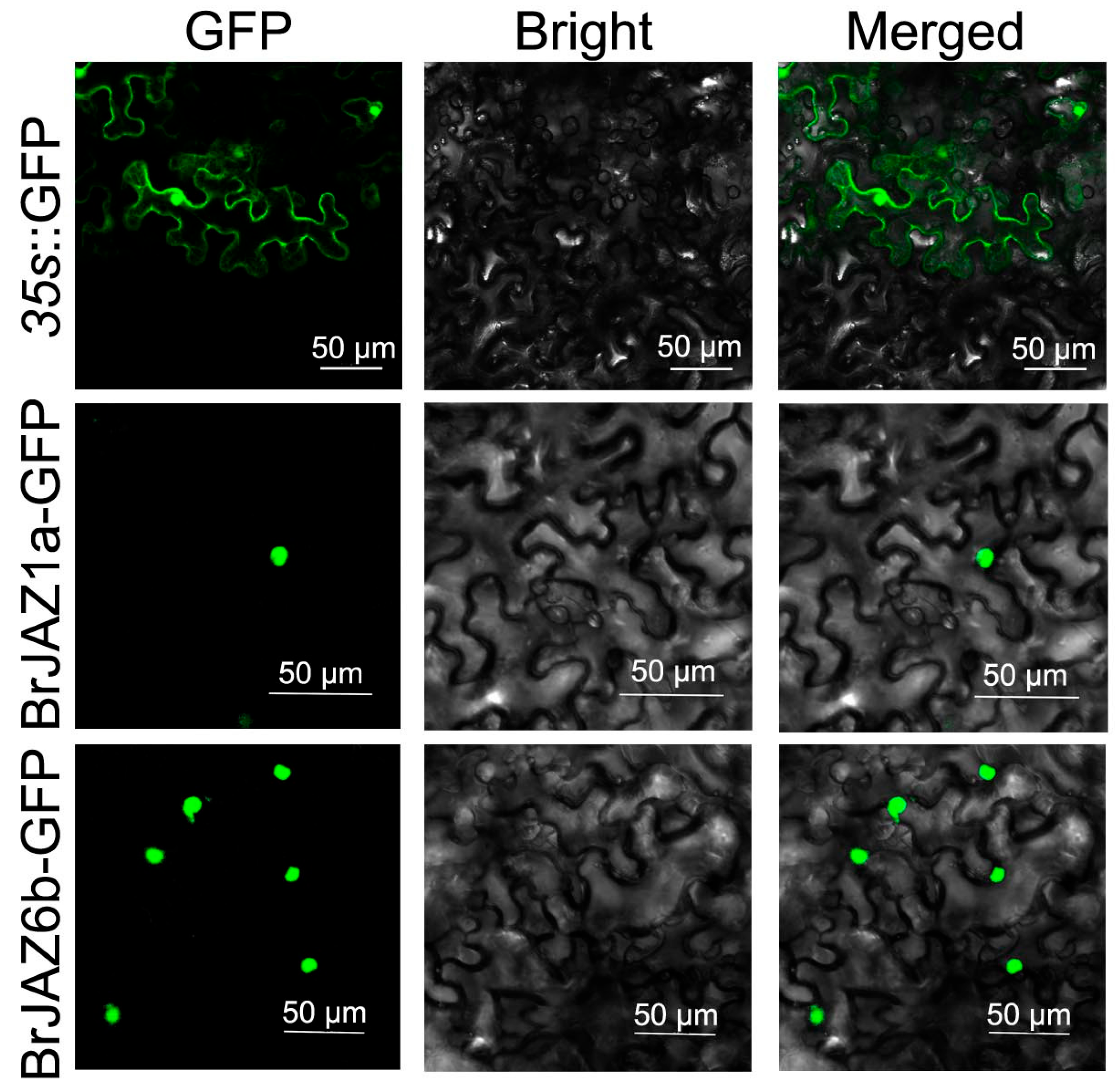 2.8. The Subcellular Localization of BrJAZ1a-GFP and BrJAZ6b-GFP