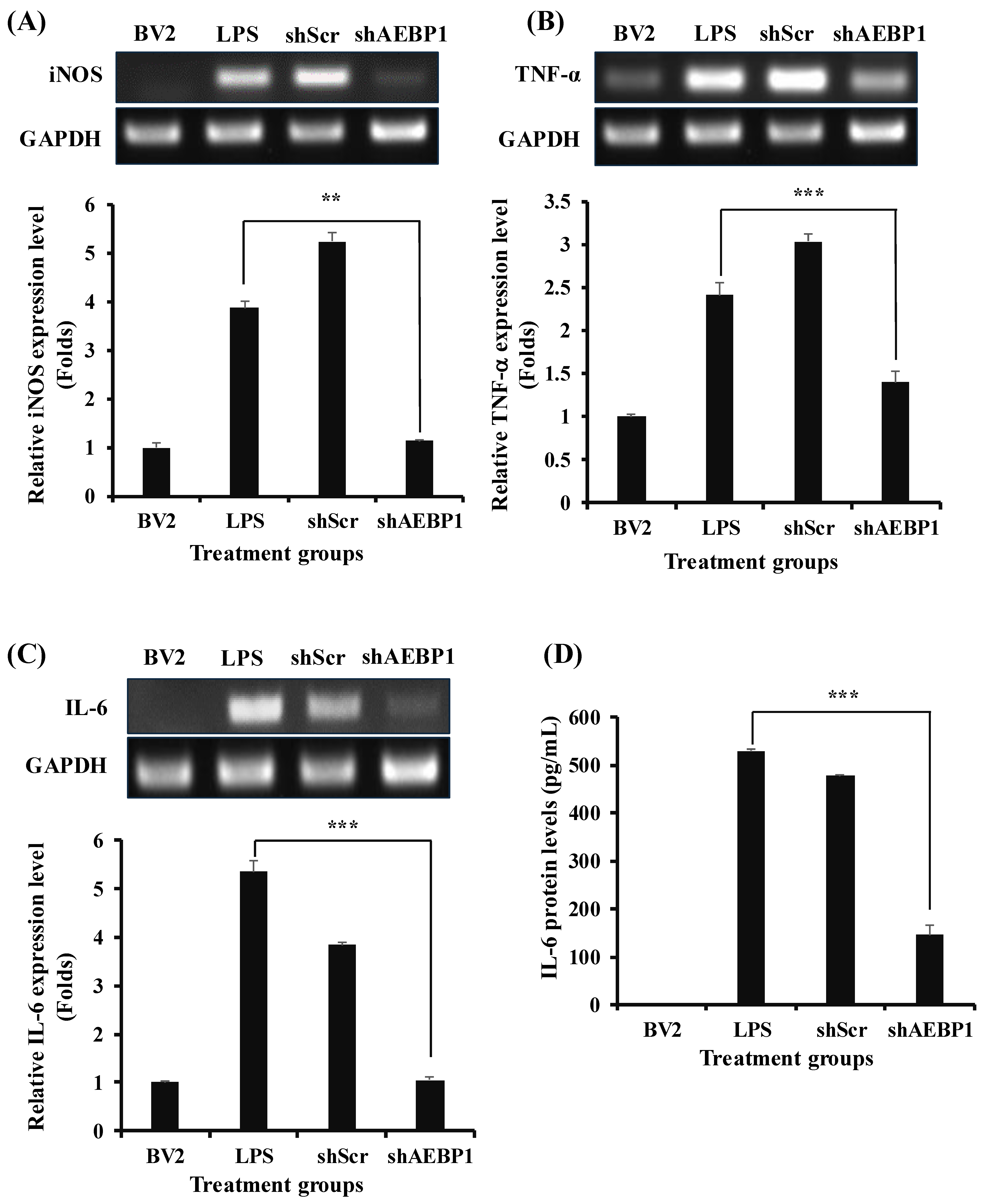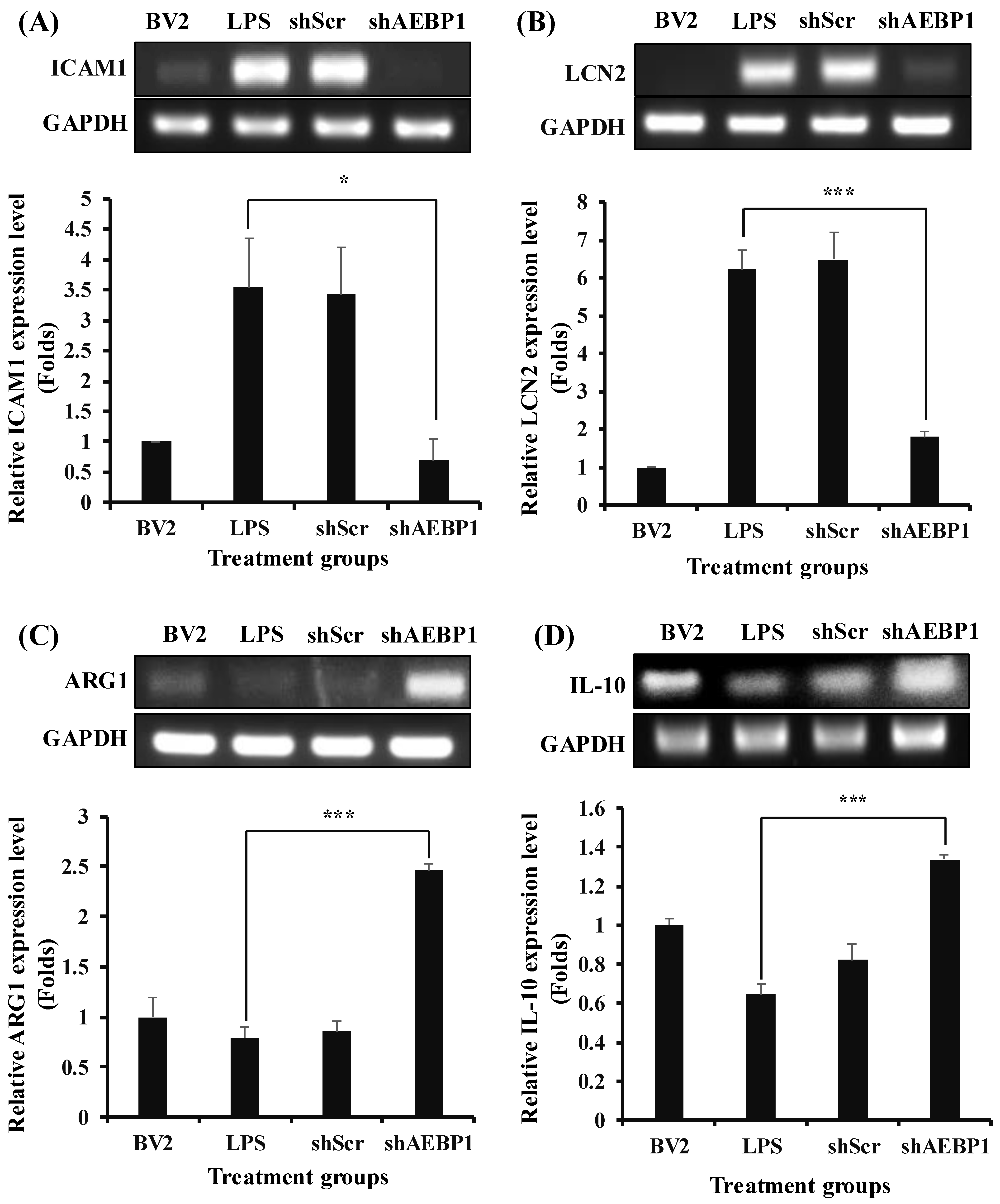AEBP1 gene can act as a molecule that induces immune responses in microglia. Indeed, we confirmed that when an external stimulus is applied, activated microglia express AEBP1 in BV2 microglial cells (
