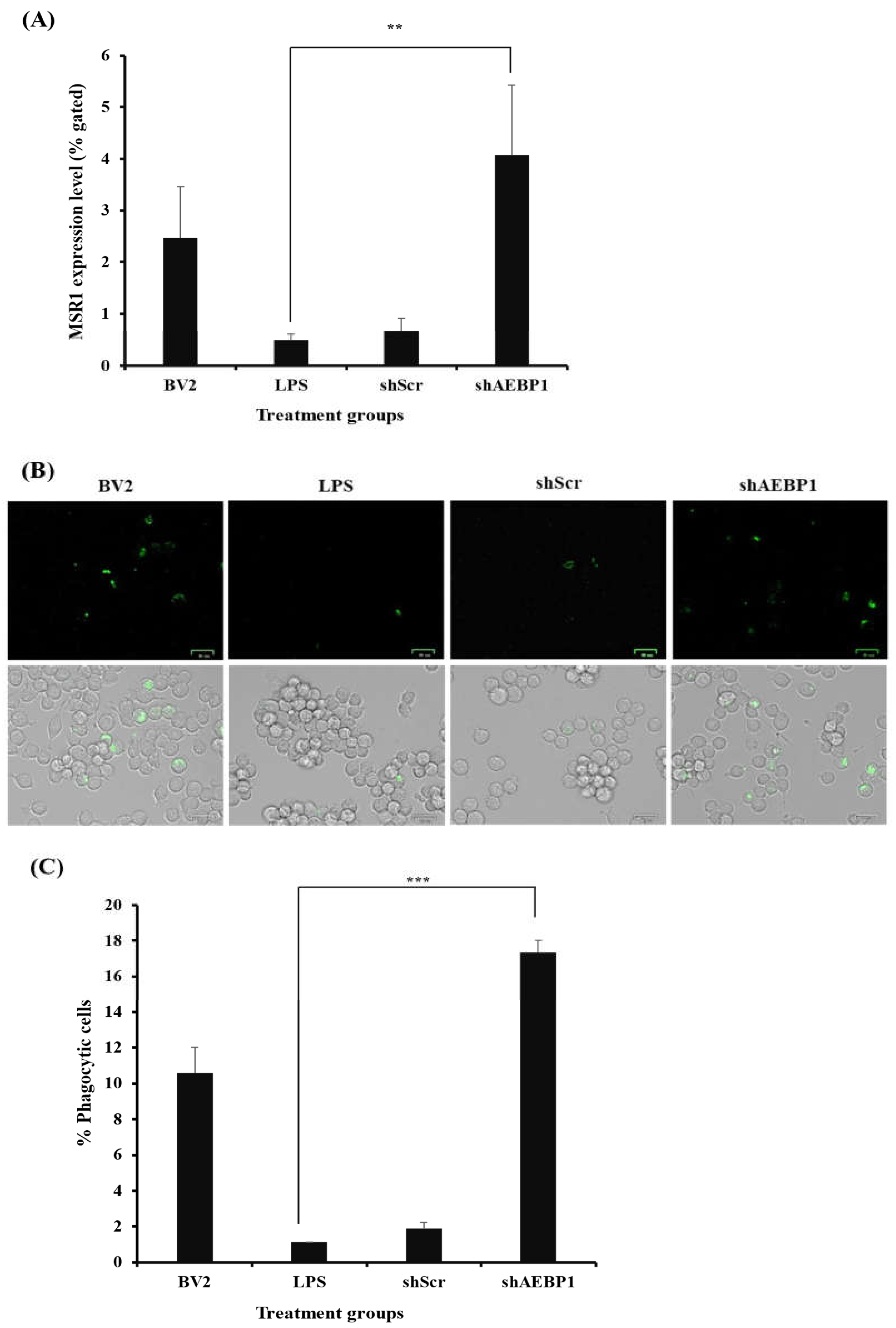 Figure 9). This suggests that regulation of AEBP1 in activated microglia is closely related to the phagocytosis of microglia, and further demonstrates the potential for developing therapeutics using regulation of AEBP1.