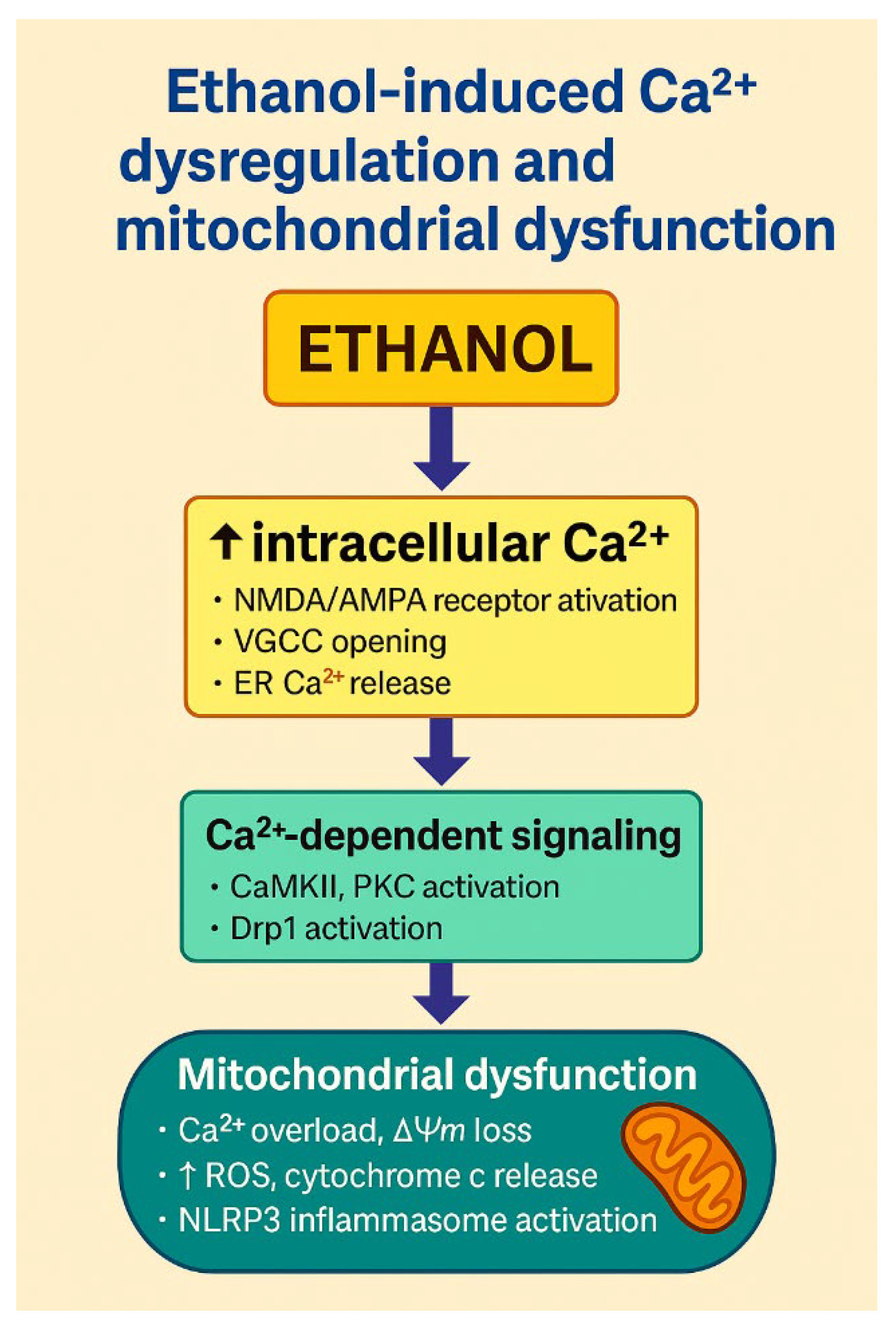 - Lim, J.R.; Lee, H.J.; Jung, Y.H.; Kim, J.S.; Chae, C.W.; Kim, S.Y.; Han, H.J. Ethanol-activated CaMKII signaling induces neuronal apoptosis through Drp1-mediated excessive mitochondrial fission and JNK1-dependent NLRP3 inflammasome activation. Cell Commun. Signal. 2020, 18, 123. [Google Scholar] [CrossRef]