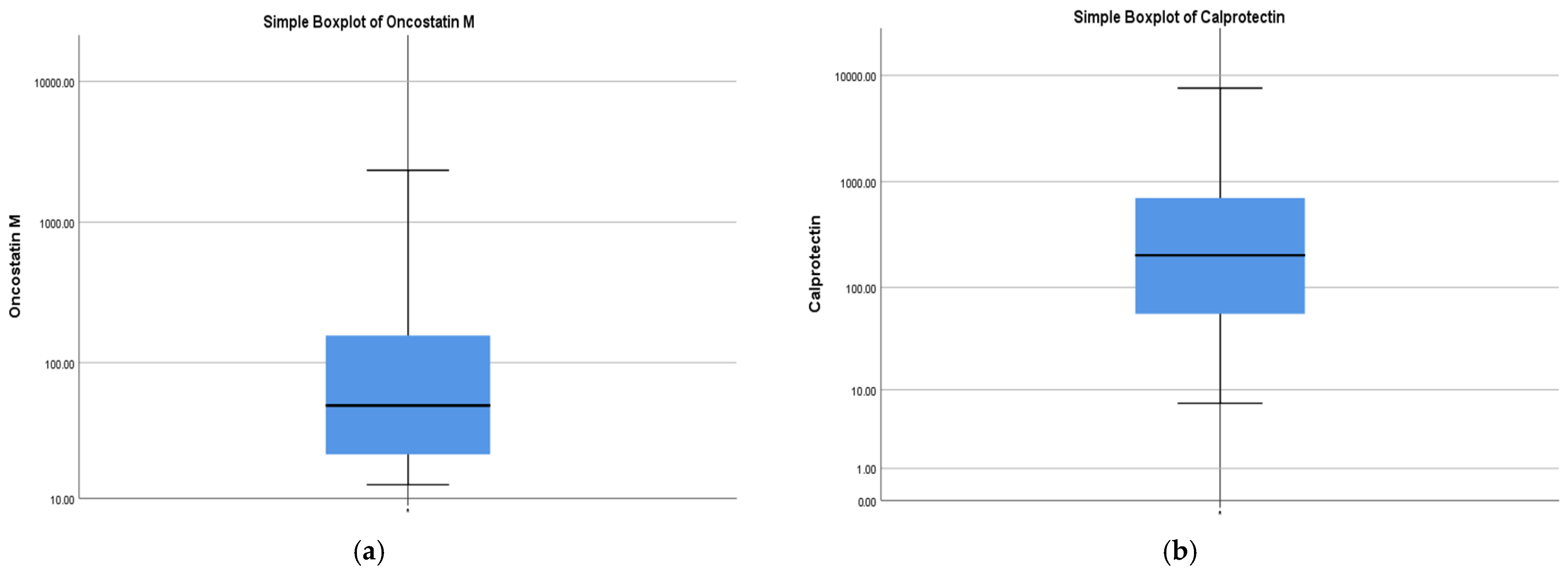 | OSM (pg/mL) | 49.12 (21.34–180.1) | 204.3 | 407 | 12.72 | 2338 |