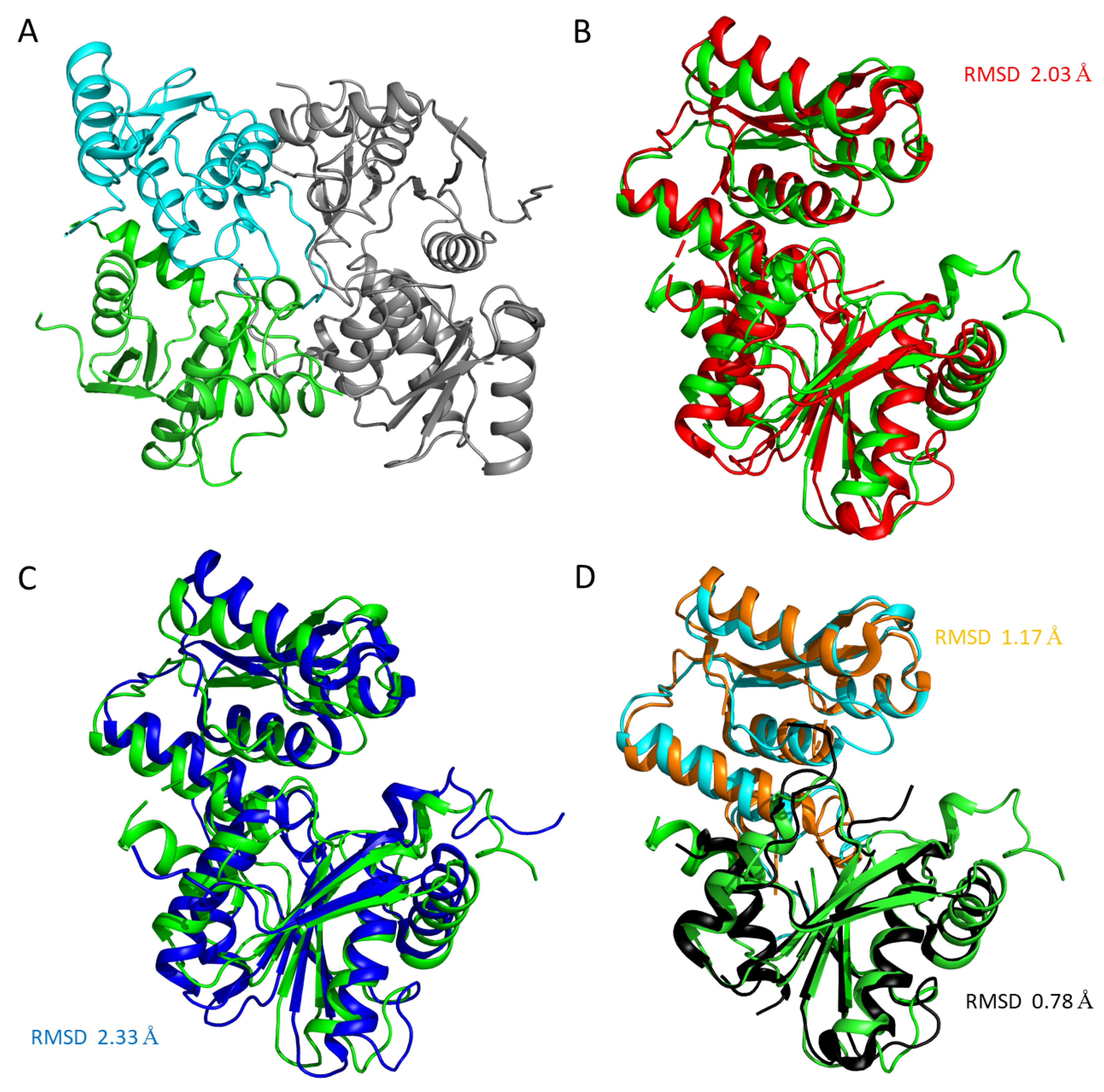 | Organism Type | Organism | PDB Code | Resolution, Å | RMSD | Space Group | Sequence Identity, % | Percentage of the Aligned Residues, % |